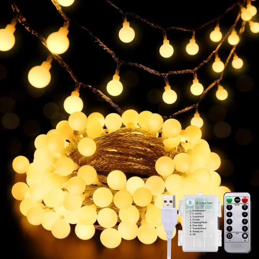 A taiyongkang beltéri tündérfények egy elegáns és sokoldalú megoldás, amely meleg, barátságos fényt hoz otthonába. Ez a 6 méteres LED lánc 40 darab meleg fehér gömblámpával rendelkezik, amely tökéletes választás karácsonyra, szilveszterre vagy egyszerűen csak egy kényelmes otthoni légkör létrehozásához. Az akkumulátor és USB üzemeltetés rugalmas használatot biztosít, míg az intelligens időzítő funkció energiatakarékos megoldást nyújt.