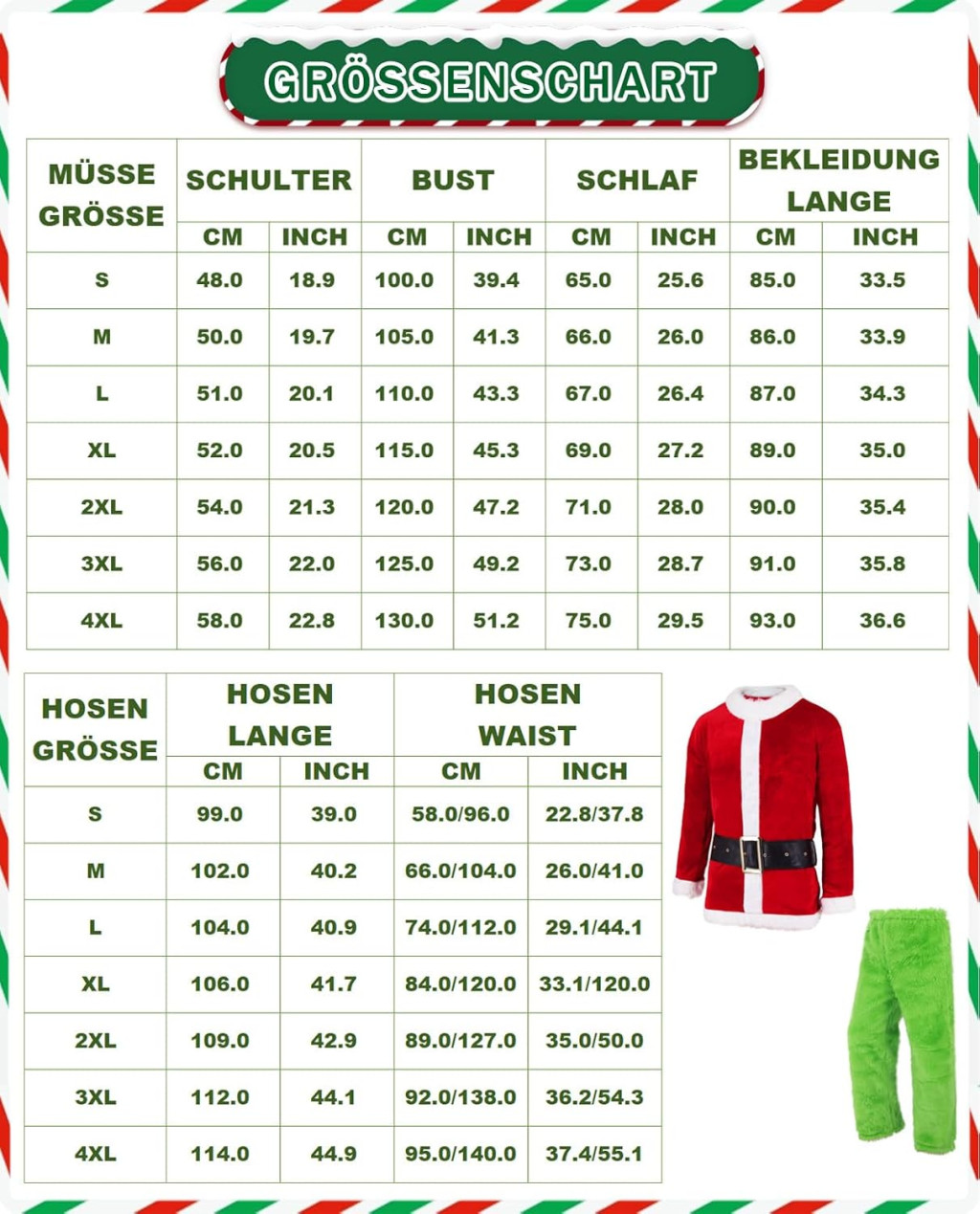 Ez a prémium minőségű felnőtt Mikulás jelmez egy teljes szettben érkezik, amely minden szükséges elemet tartalmaz az autentikus karácsonyi megjelenéshez. A zöld szörny maszk, a klasszikus Mikulás kalap és az ajándéktáska kombinációja garantálja, hogy garantáltan felkelted majd az összes tekintet az ünnepek alatt. Tökéletes választás karácsonyi bulikhoz, cosplay eseményekhez vagy családi ünnepségekhez.