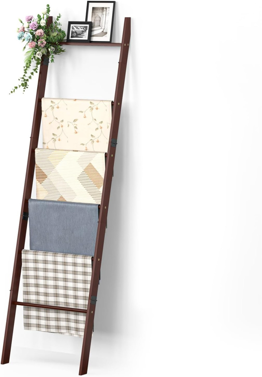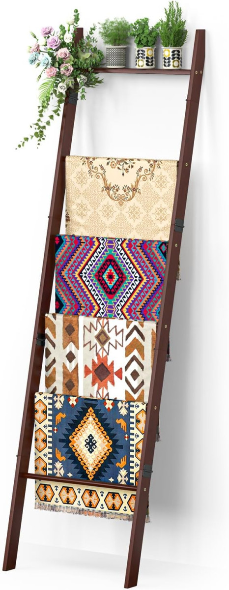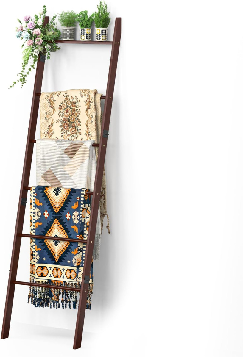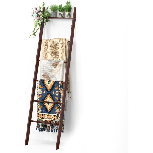 BAMBANG 6 szintes törölközőlétra, dekoratív takarólétra, falhoz támasztható polc, barna