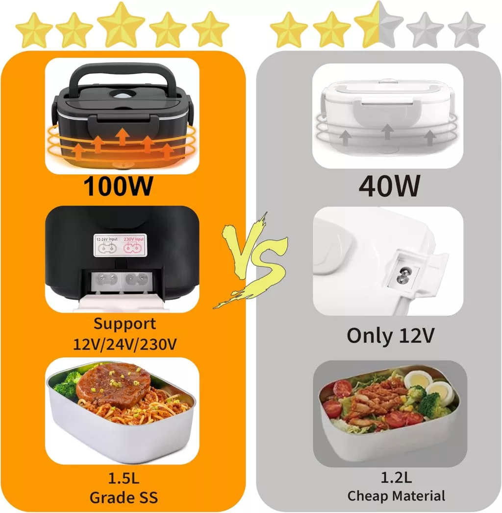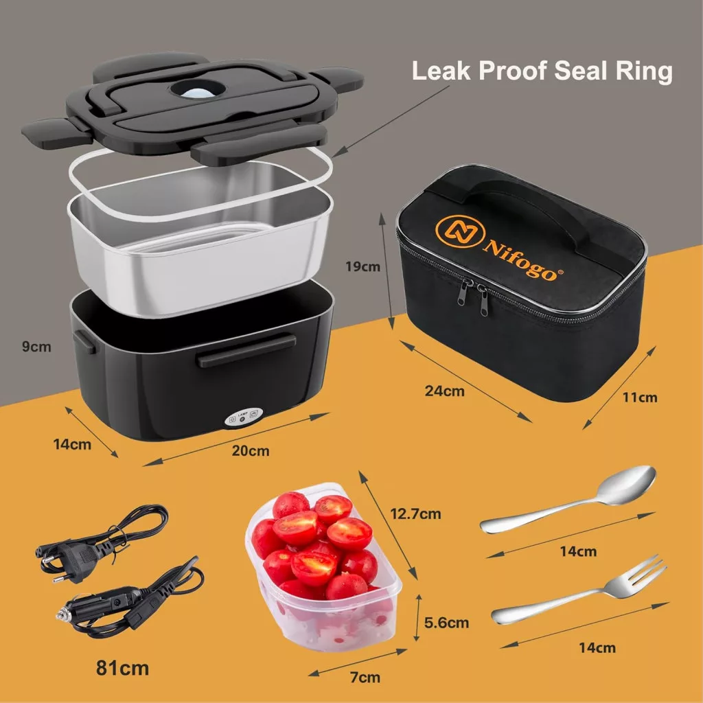 A Nifogo elektromos lunchbox egy kiváló választás azoknak, akik szeretnék meleg, friss ételt fogyasztani munka közben vagy utazás során. A 100 W teljesítmény, a három tápellátási lehetőség és a magas minőségű anyagok biztosítják a megbízható és hosszú élettartamú használatot. Az egyenletes melegítés és a szilikon tömítés garantálja, hogy az ételek frissek és biztonságosak maradnak. Akár autóban, irodában vagy otthon használja, ez a lunchbox biztosan nem fog csalódást okozni.