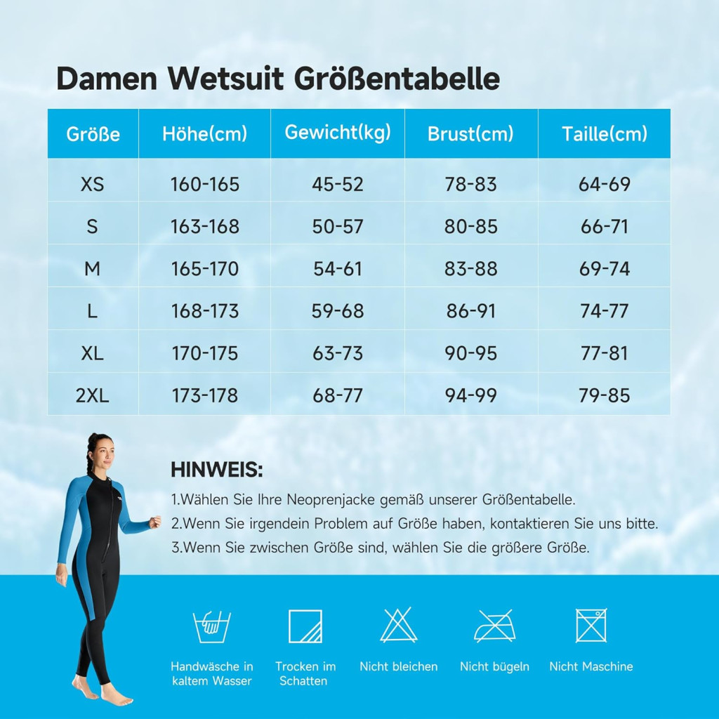 X-mAnTA 3 mm Teljes Neoprén Búvárruha Női - Fekete/Kék Cipzáras Búvárruha Nyúlékony Anyagból Búvárkodáshoz, Snorkelezéshez, Szörfözéshez