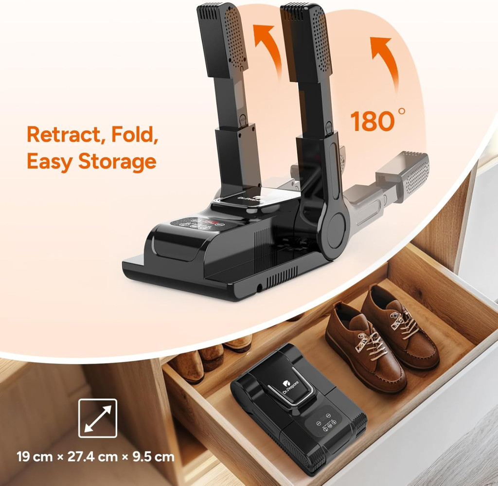 - 360° Teljes Szárítás: Több légnyílás és erőteljes légáramlás biztosítja, hogy a cipő minden sarka száraz legyen