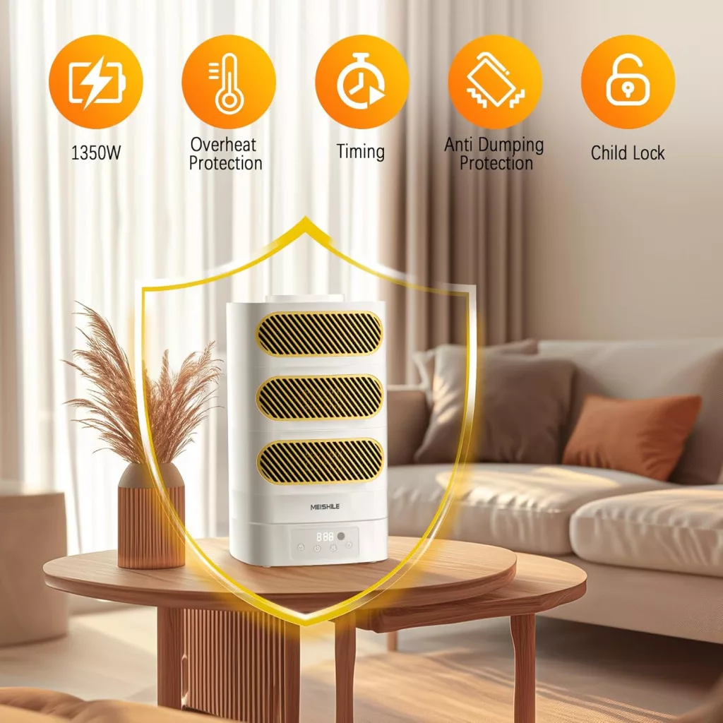 Ez a szeparálható ventilátoros fűtőtest kiváló választás azok számára, akik modern, biztonságos és energiahatékony fűtési megoldást keresnek. A szeparálható modulok, a csendes működés, a távirányító és a számos biztonsági funkció ezt az eszközt ideálissá teszik hálószobák, dolgozószobák és nappali szobák fűtéséhez. Az 1350 W teljesítmény és a 120° széles szögű lengés biztosítja az egyenletes hőeloszlást, míg az időzítő funkció és az energiahatékony design segít az energiafogyasztás csökkentésében.