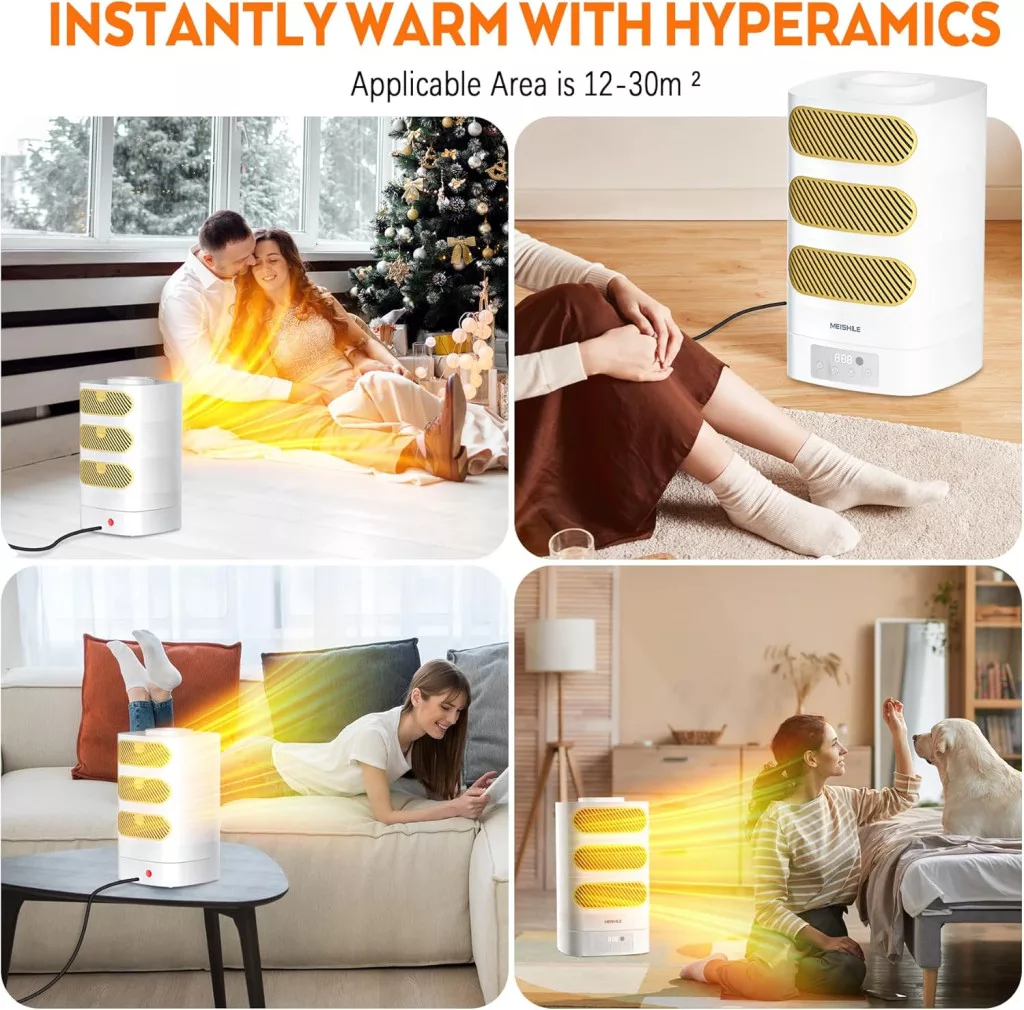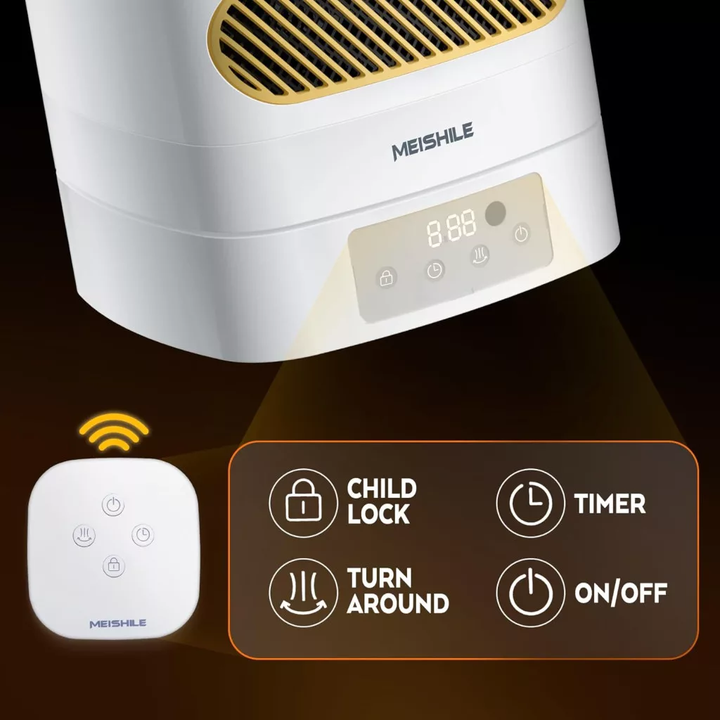 MEISHILE 1350W Elektromos Fűtőventillátor Távirányítóval, 120° Lengő, Csendes Hőlégfúvó Időzítővel