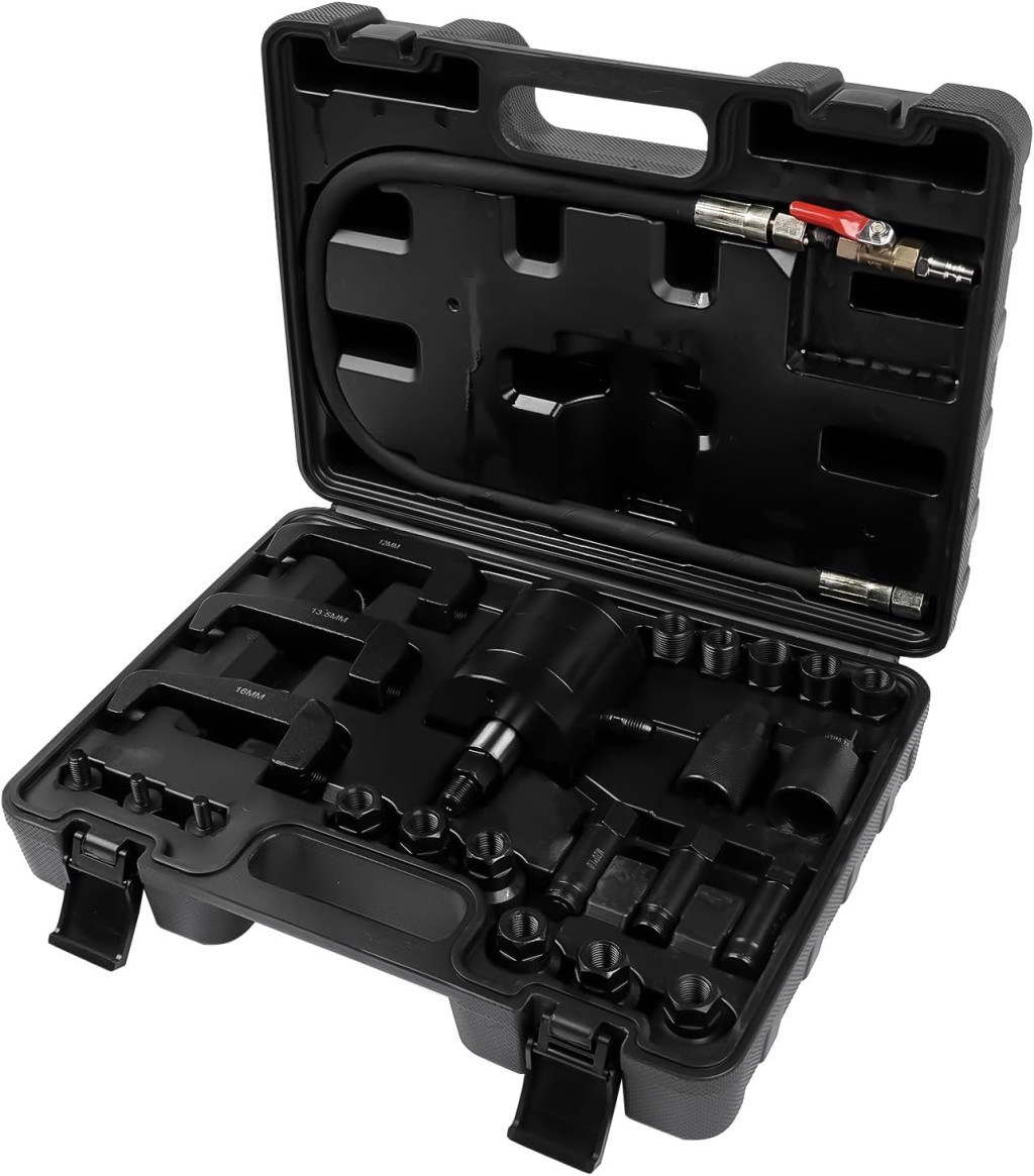 A Bisenya 24 részes professzionális pneumatikus injektorszivattyú kit egy sokoldalú megoldás az elakadt vagy nehezen eltávolítható injektorok kezeléséhez. Ez a komprehenzív eszközkészlet kifejezetten a Bosch, Delphi és Siemens közös sínű injektorokhoz tervezték, amelyek mágneses vagy csavarkötéssel rendelkeznek. A kit légrezgéses technológiájával és 20-30 Nm nyomatékával képes az olyan injektorokat eltávolítani, amelyek hagyományos módszerekkel nem mozdíthatók meg.
