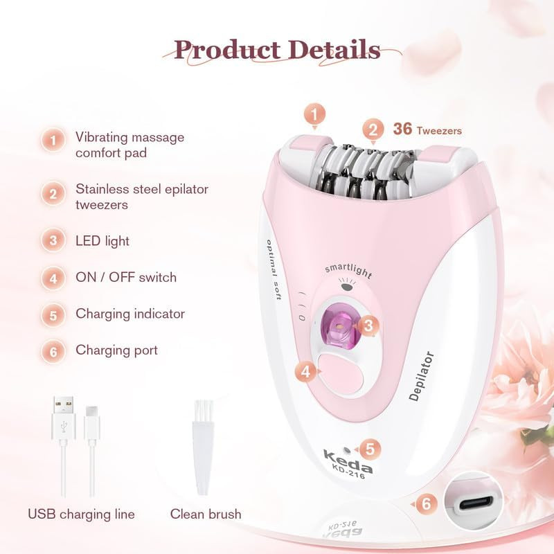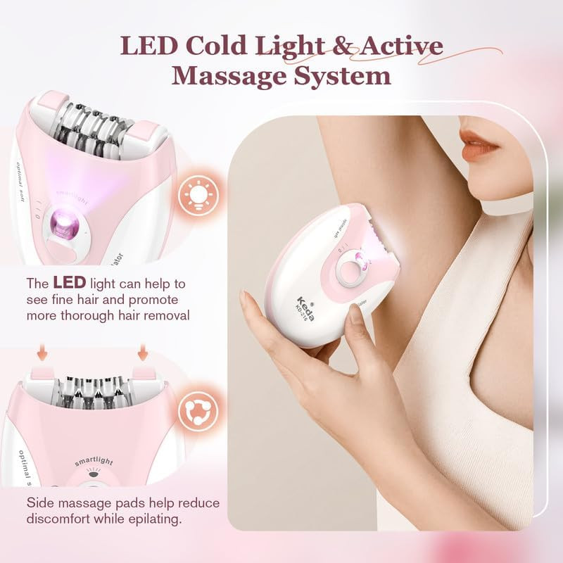 Tento epilátor je všestranne použiteľný na rôznych častiach tela. Na odstraňovanie chĺpkov na tvári je ideálny pre jemné chĺpky, zatiaľ čo na telo, nohy a líniu bikín sa odporúča vyšší rýchlostný stupeň. Pomocou LED svetla môžete ľahko identifikovať a odstrániť aj tie najjemnejšie chĺpky. Prístroj je vhodný na každodenné použitie a vďaka masážnym vankúšikom zostáva podráždenie pokožky minimálne.