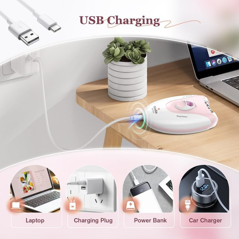 Epilátor sa ľahko čistí a udržiava. Pomocou čistiacej kefky, ktorá je súčasťou balenia, jednoducho odstránite zvyšky chĺpkov z epilačnej hlavy. Zvyšok tela prístroja môžete utrieť vlhkou handričkou, ale prístroj sa nesmie ponárať do vody. Po pravidelnom čistení si prístroj dlhšie zachová svoj výkon. Pomocou USB nabíjacieho kábla môžete batériu ľahko nabiť a zelená kontrolka signalizuje, keď je nabíjanie dokončené.
