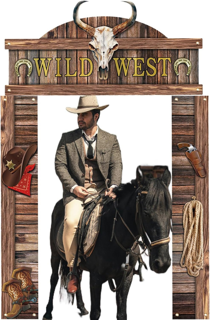 Gosknor Cowboy Party Dverový Banner - Dekorácia na Divoký Západ Závesná Tabuľa Foto Rekvizita Westernová Tematická Rustikálna Párty Dekorácia
