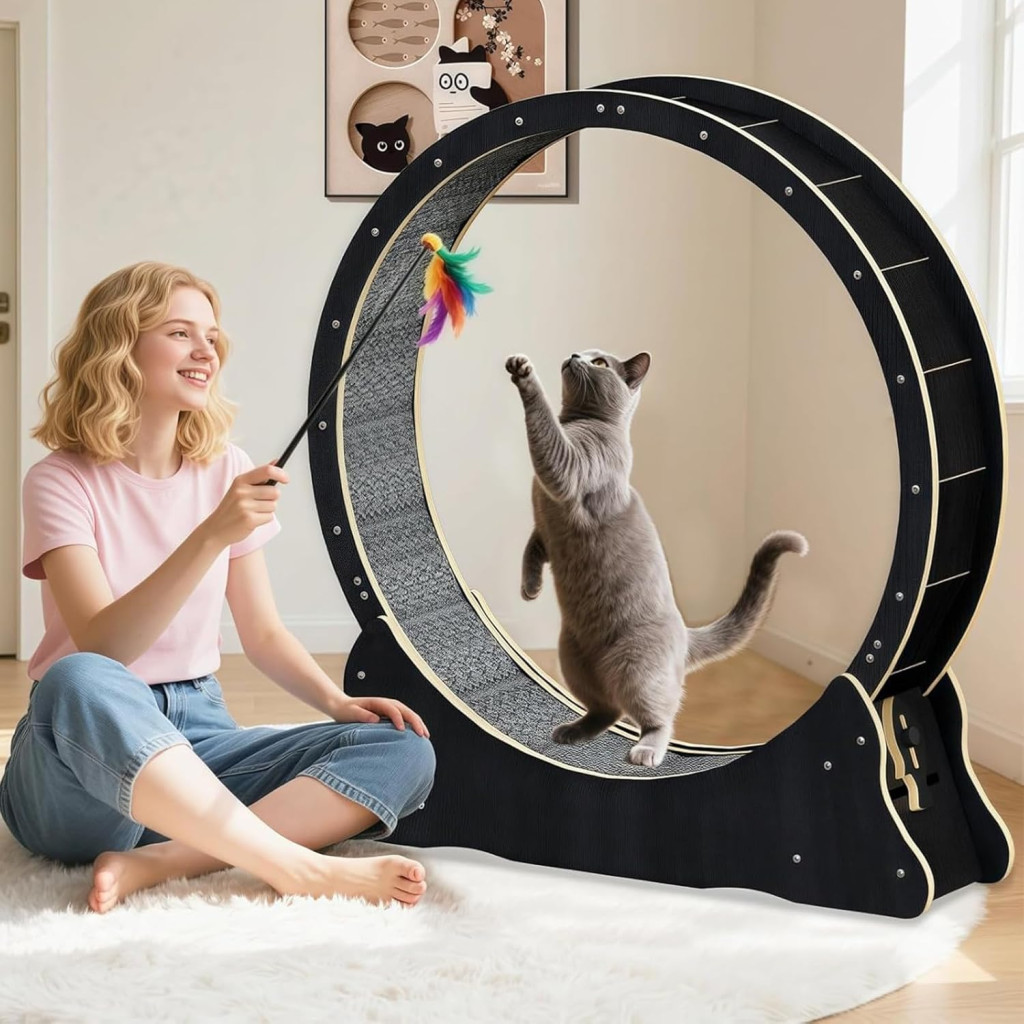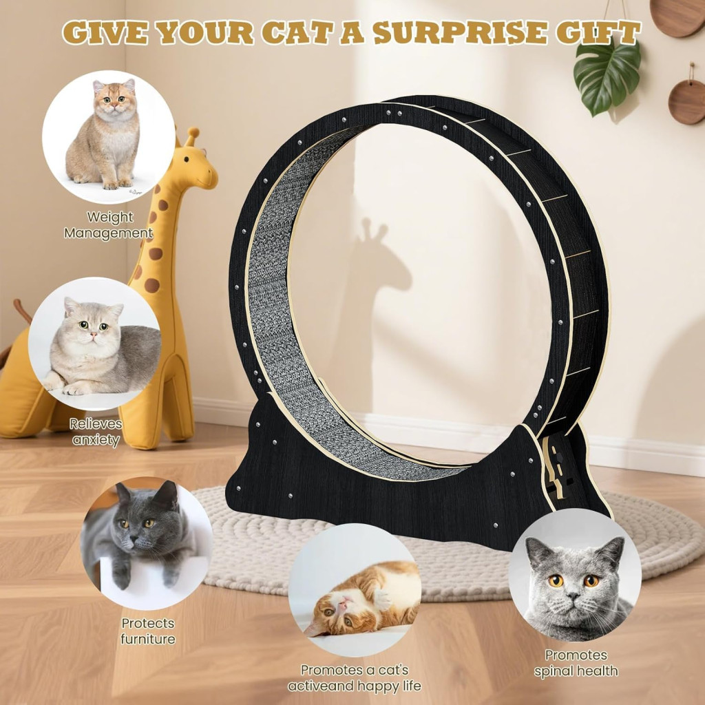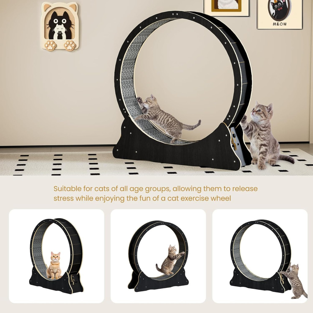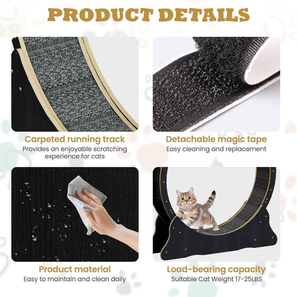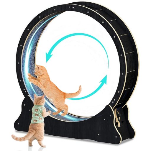 WUDLEP Macska Futókerék 100 cm Szőnyeges Futópályával, Nagy Macska Kerék Edzéshez Fogyáshoz, Fekete Macska Futógép