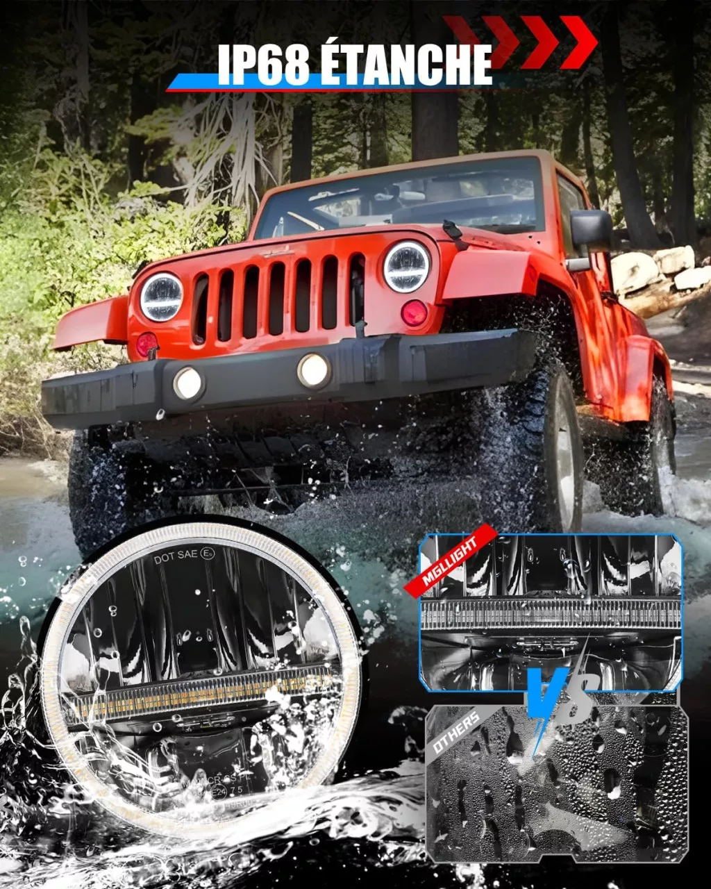 Az elegáns halo dizájn középső fénnyel kombinálva egyedülálló megjelenést és funkcionalitást biztosít. Az egyenletes fényeloszlás biztosítja, hogy nincs vak folt vagy sötét terület, így tökéletes választás az off-road utakhoz és éjszakai vezetéshez. A borostyán fordulójelzések további biztonsági réteget adnak az úthoz.