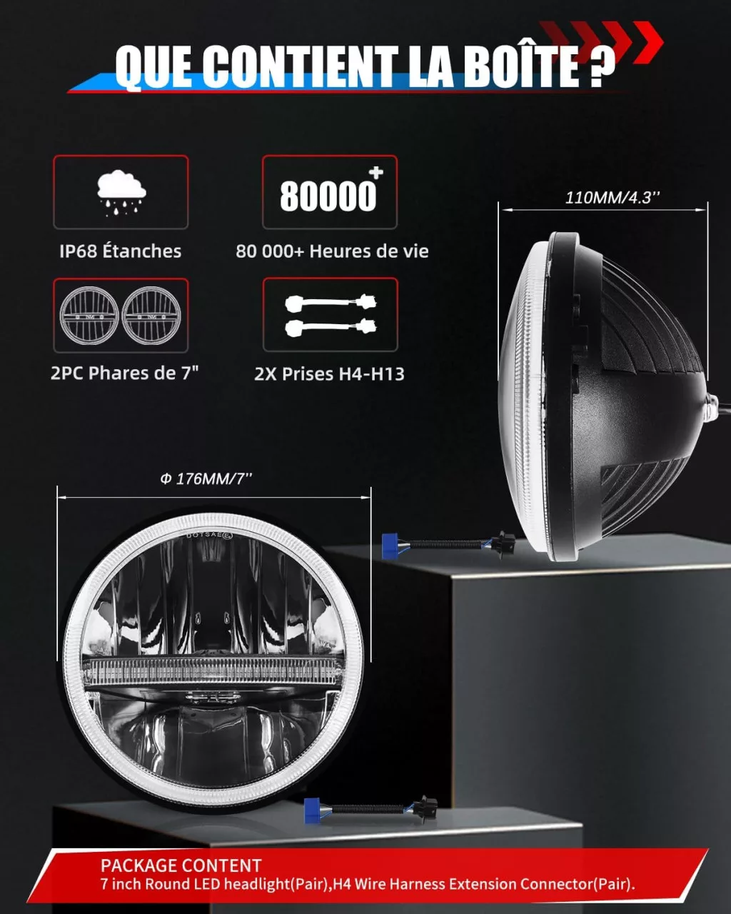 - Rendkívüli Fényerő: 15000 lumen távoli fény és 10000 lumen közeli fény, 300%-kal fényesebb az eredeti HID fényszóróknál