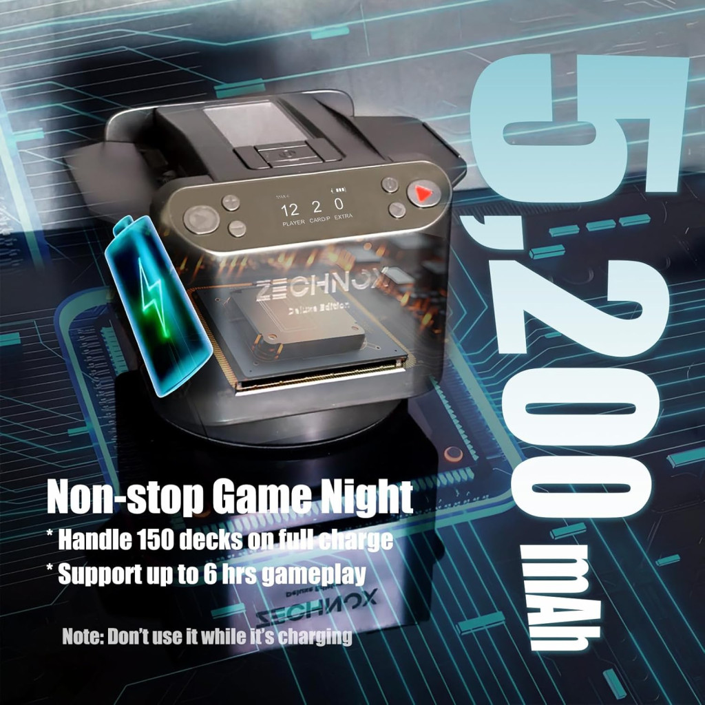 A ZechnoX Automatic Card Shuffler nem csupán egy eszköz, hanem egy befektetés a jobb játékélménybe. Garantálja a teljesen igazságos játékot, időt takarít meg, és professzionális szintű funkcionalitást biztosít. Az EU White Pro modell elegáns megjelenésével bármilyen játékasztalhoz illeszkedik, és a 8 vezeték nélküli távirányító lehetővé teszi, hogy minden játékos aktívan részt vegyen a játékban. Az 5200 mAh akkumulátor hosszú játékestéket tesz lehetővé, és a csendes motor nem zavarja a játékos beszélgetéseket.