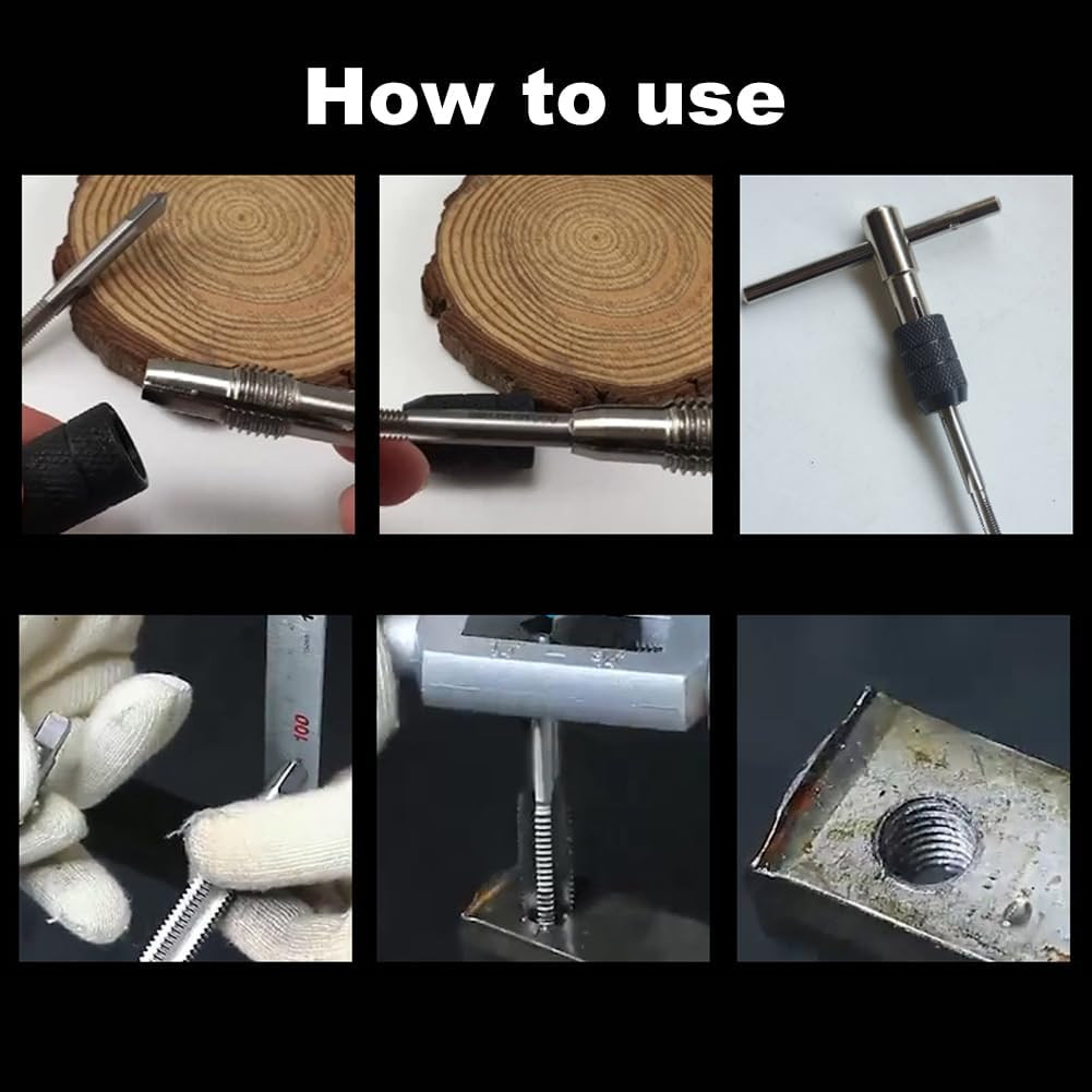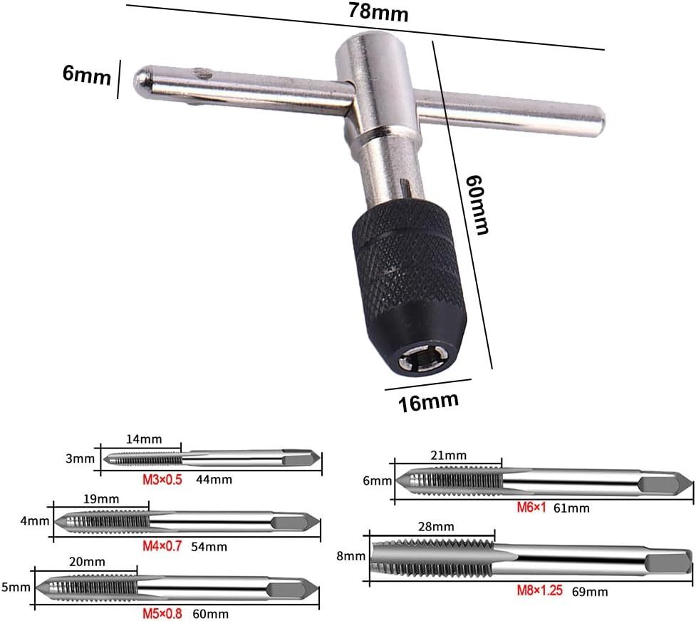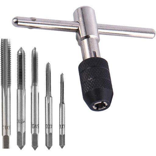 A fém anyagból készült szerszám rendkívül tartós és hosszú élettartamú, így jó befektetés a hosszú távú használatra. Az 5 cserélhető fej (M3, M4, M5, M6, M8) lehetővé teszi a különféle méretű menetmetsző munkákat, így egy készlet elegendő a legtöbb alkalmazáshoz.