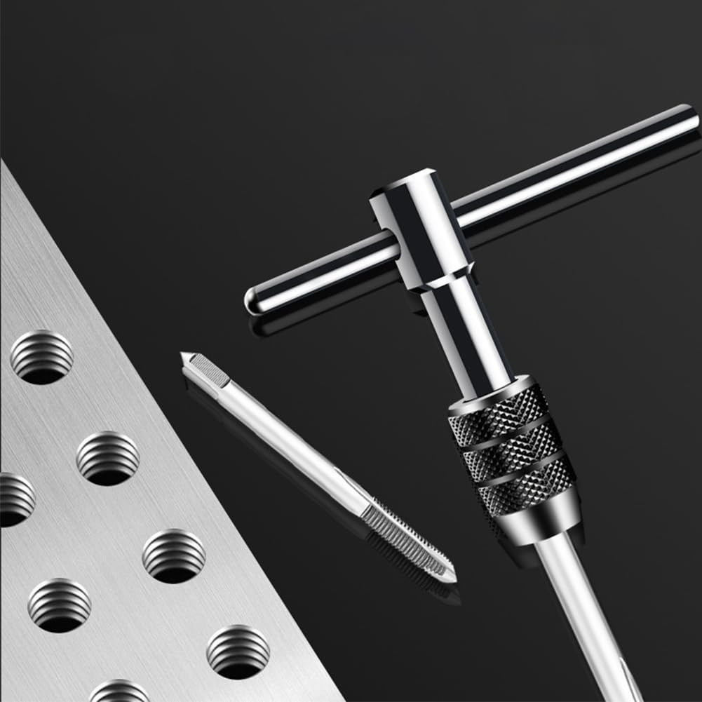 A készlet 5 cserélhető fejjel érkezik (M3, M4, M5, M6, M8), amely lehetővé teszi a különböző méretű menetmetsző munkákat. A fém anyagból készült szerszám rendkívül tartós, nem deformálódik, és kiváló korróziós ellenállással rendelkezik, így hosszú évekig megbízható szolgálatot nyújt.