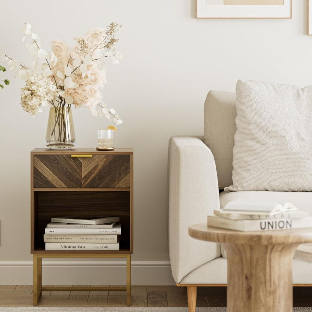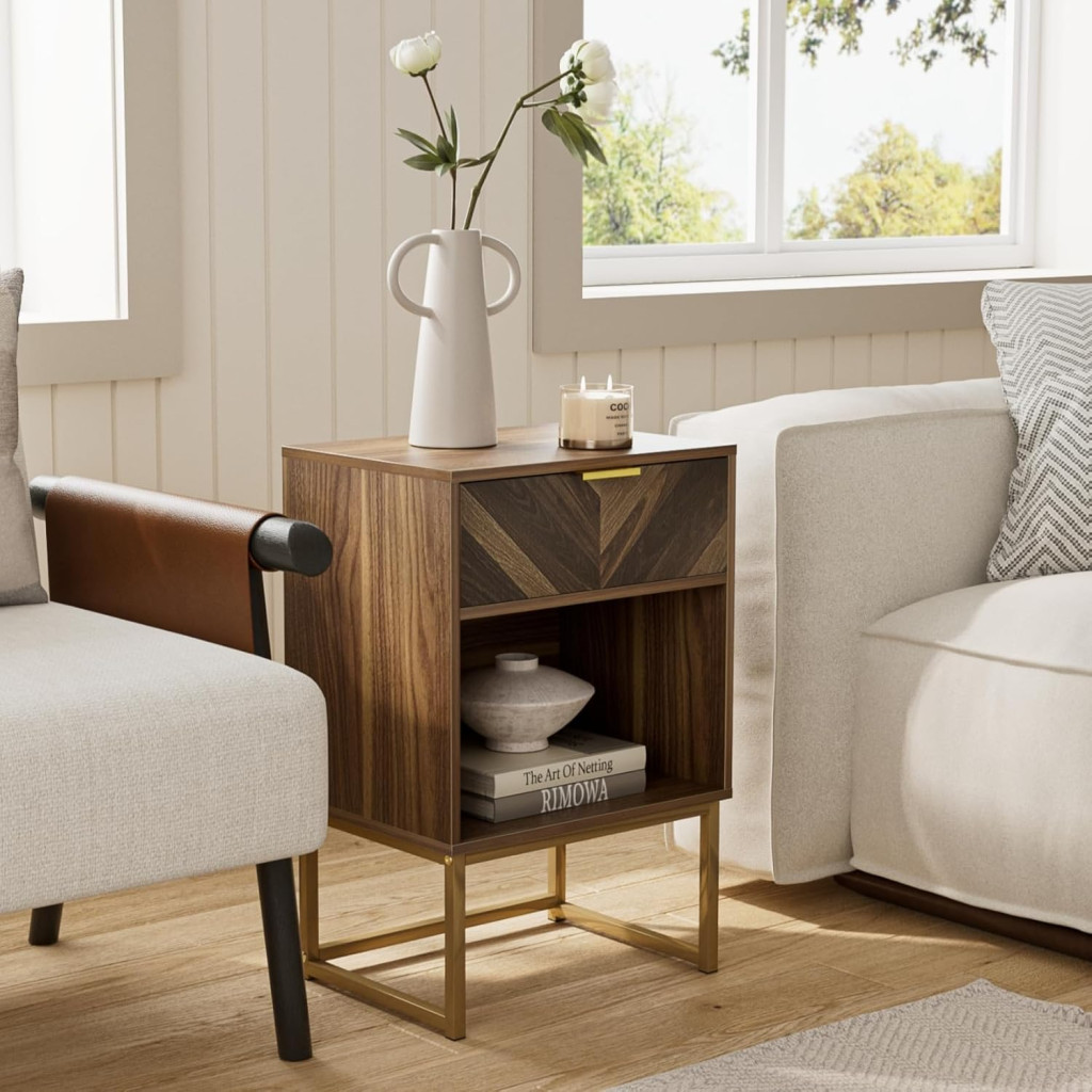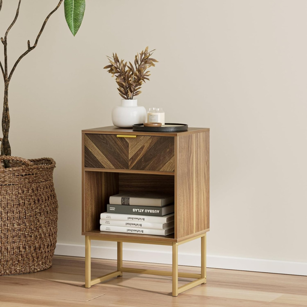 Nočný stolík HEYZOEY s otvoreným úložným priestorom, orech, 40x30x60 cm