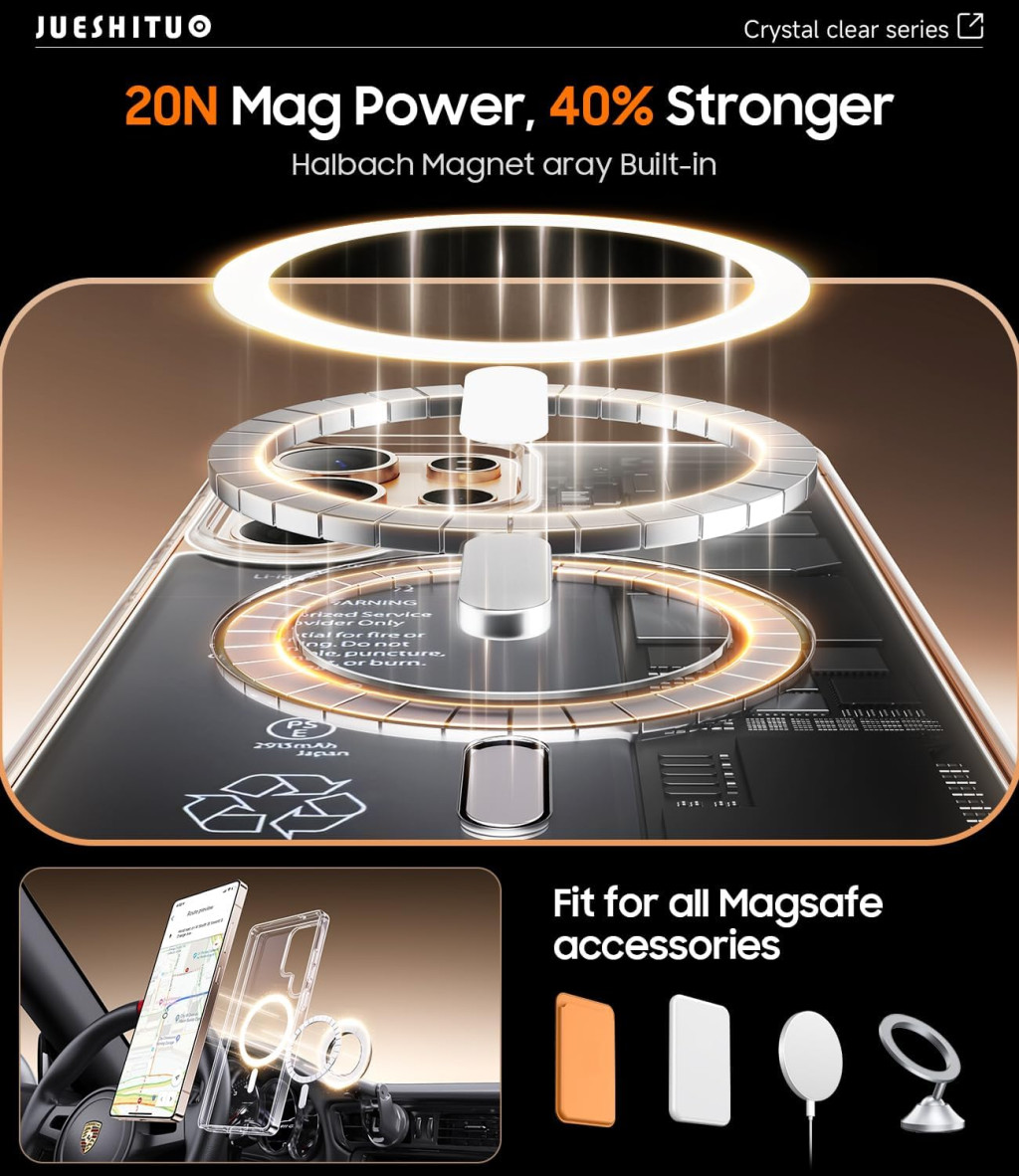 A tok legkiemelkedőbb tulajdonsága a 48 darab N56S erős mágnes, amelyek szabadalmaztatott mágneses elrendezésben helyezkednek el. Ez biztosítja a tökéletes kompatibilitást a MagSafe töltőkkel és kiegészítőkkel, miközben az E-Shield áramkör védi az akkumulátort a vezeték nélküli töltés során.