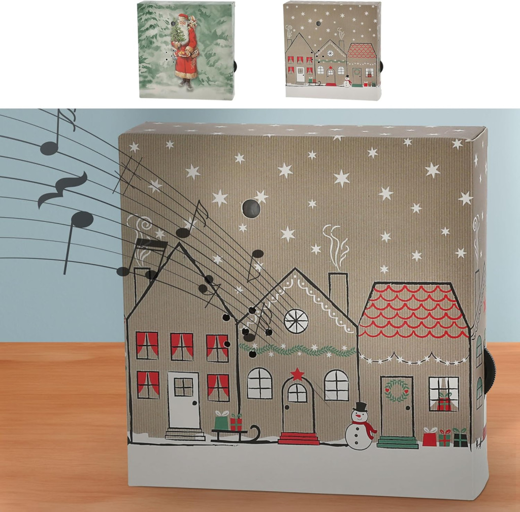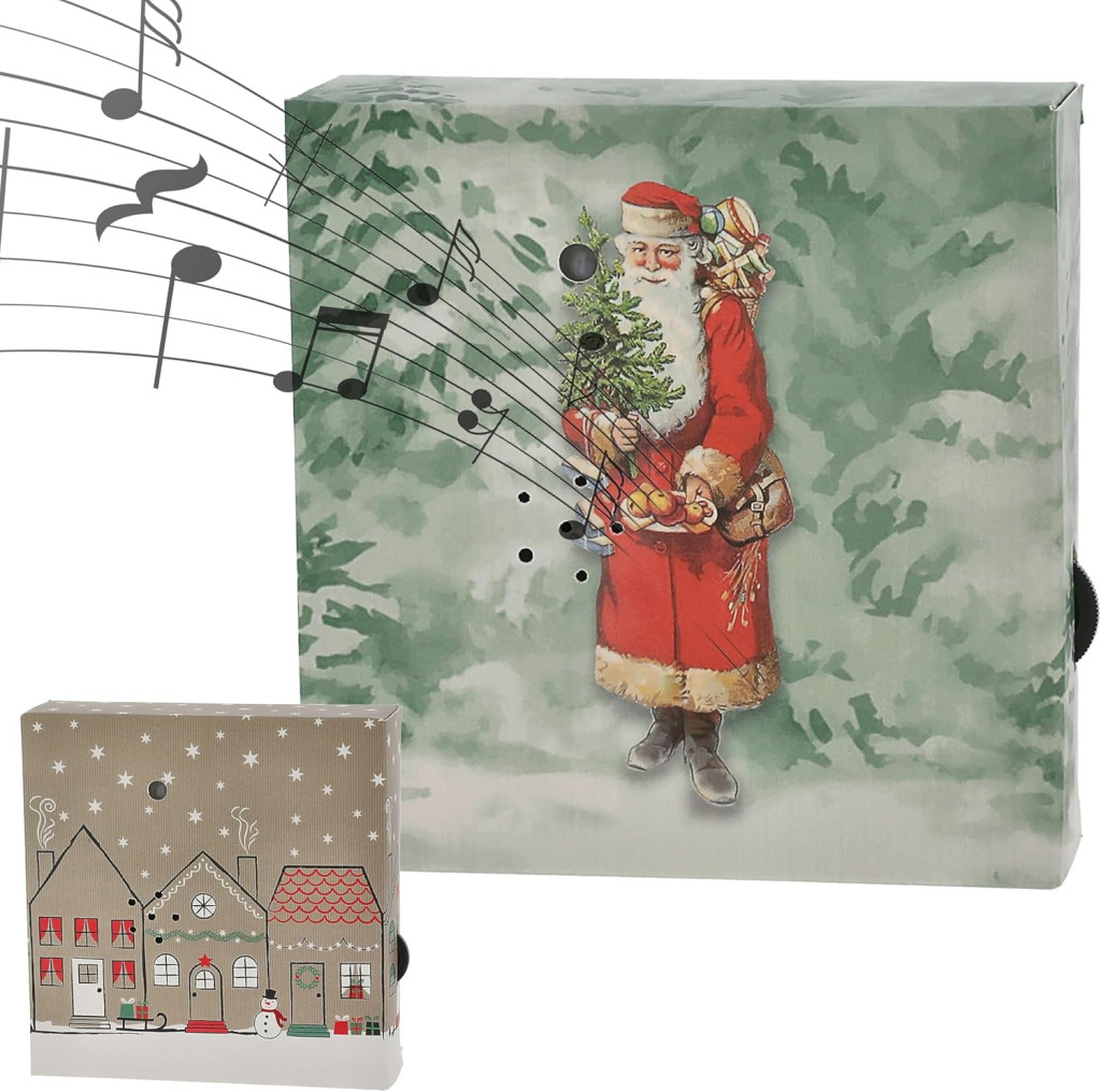• Két különböző karácsonyi dallam: Az egyik hangdoboz a „Csendesen hull a hó..." melódiáját játssza, míg a másik a „Kívánunk boldog karácsonyt..." klasszikus dallamát