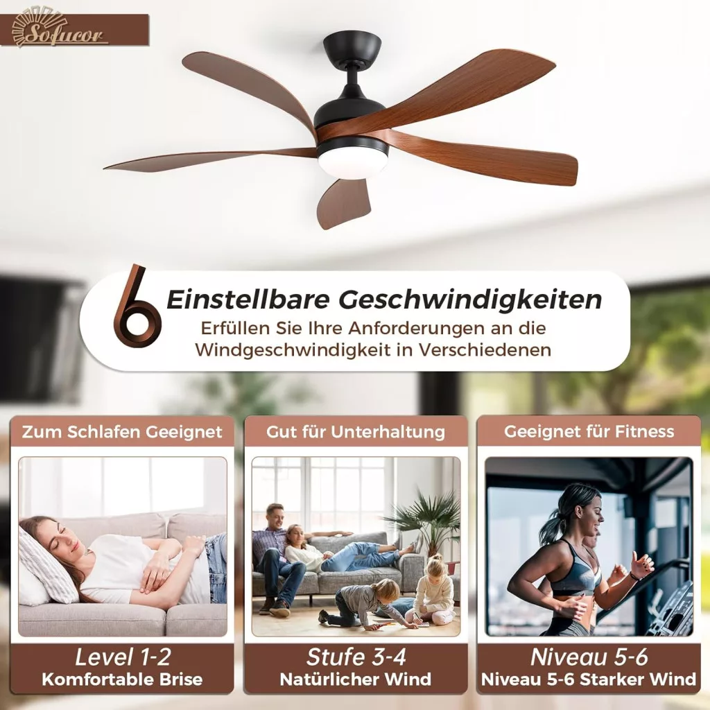 Stropný ventilátor Sofucor je vynikajúcou voľbou pre tých, ktorí hľadajú moderné, energeticky úsporné a tiché riešenie vetrania a osvetlenia. O 75 % energeticky úspornejší DC motor, hlučnosť 30 dB a kompletné ovládanie diaľkovým ovládačom robia toto zariadenie ideálnym pre spálne, kancelárie a obývacie izby. 3 teploty farieb a nastavenie jasu 10-100 % umožňujú vytvoriť dokonalú atmosféru v každej miestnosti. Funkcia spätného chodu zaisťuje, že si užijete optimálnu cirkuláciu vzduchu po celý rok. Tento ventilátor nie je len funkčným zariadením, ale aj elegantným dekoratívnym prvkom, ktorý pozdvihne váš domov.