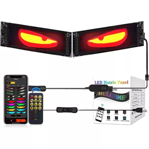 Urobte svoje vozidlo jedinečným s týmto inovatívnym LED systémom očí! Tento programovateľný, flexibilný displej vám umožňuje zobrazovať živé vzory očí alebo jedinečné animácie priamo na oknách vášho auta. Vďaka modernej technológii Bluetooth ho môžete jednoducho ovládať zo svojho smartfónu, takže vaše vozidlo zaručene vynikne z davu.