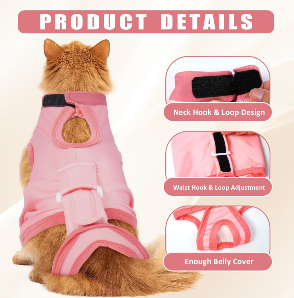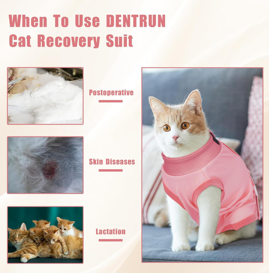 Pooperačný obleček DENTRUN pre mačky je ideálnou voľbou pre majiteľov mačiek, ktorí chcú svojmu miláčikovi zabezpečiť pohodlné a bezpečné zotavenie. Ružový obleček vo veľkosti L je perfektný pre väčšie mačky a mäkký, priedušný materiál zaručuje, že pokožka vašej mačky nebude trpieť podráždením.