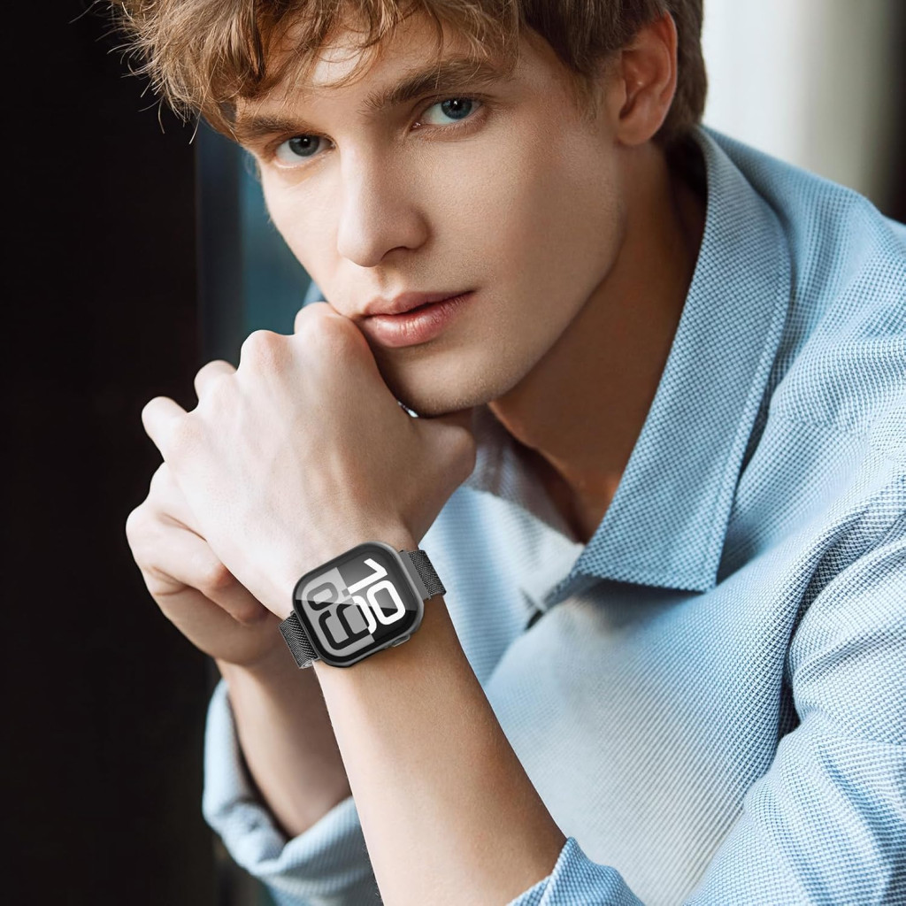 Objavte dokonalý doplnok pre vaše Apple Watch! Tento prémiový magnetický náramok v kombinácii s ochranným puzdrom dodáva nielen štýlový vzhľad, ale zároveň poskytuje maximálnu ochranu vášmu zariadeniu. Milánsky ťah vyrobený z nehrdzavejúcej ocele je elegantný a nadčasový, zatiaľ čo perfektne sediace ochranné puzdro chráni displej hodiniek pred škrabancami a poškodením. Kompatibilné so všetkými modelmi Apple Watch, vrátane najnovších Series 10, 9, 8, 7, 6, 5, 4, 3, 2, 1, SE/2 a Ultra, ako aj so všetkými veľkosťami (38/40/41/42/44/45/46/49 mm).