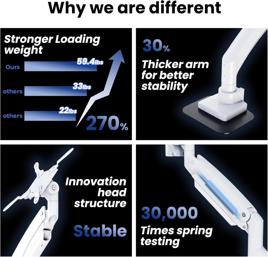 - Nagyobb monitorokhoz szükséges megfelelő asztalvastagság (10-45 mm)