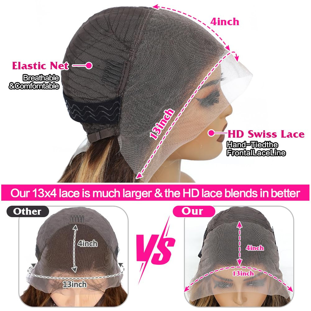 Ez a prémium minőségű ombre highlight paróka a legmagasabb szintű valódi hajból készült, amely garantálja a természetes megjelenést és a hosszú élettartamot. A 13x4 HD csipke elülső rész lehetővé teszi a különféle frizurastílusok kialakítását, míg a glueless technológia biztosítja a kényelmes és biztonságos viselést. A P4/27 ombre szín kombinációja elegáns és sokoldalú, amely bármely bőrtónushoz illeszkedik.