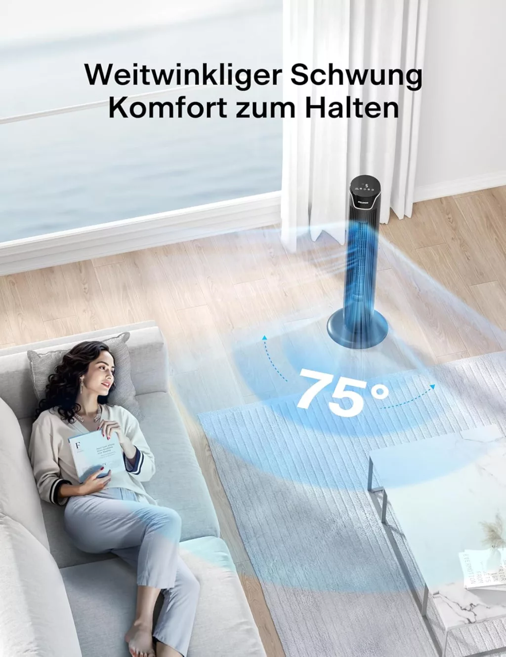 Pelonis Torony Ventilátor Távirányítóval, Csendes Állóventilátor Hálóhoz és Irodához