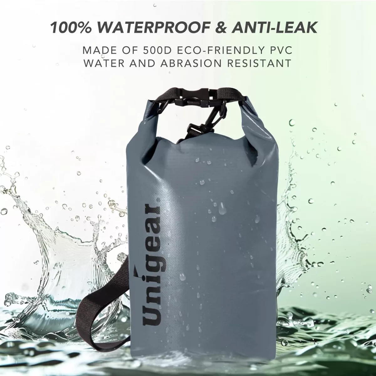 Vodotesný suchý vak Unigear je ideálnou voľbou pre akékoľvek dobrodružstvo pri vode. Či už ide o kajakovanie, návštevu pláže, rybolov alebo kempovanie, tento vak zaručene udrží vaše cenné veci v suchu. Vak vyrobený z odolného 500D PVC materiálu je 100% vodotesný a dostupný v rôznych veľkostiach (od 2L do 40L), aby ste našli presne tú, ktorú potrebujete.