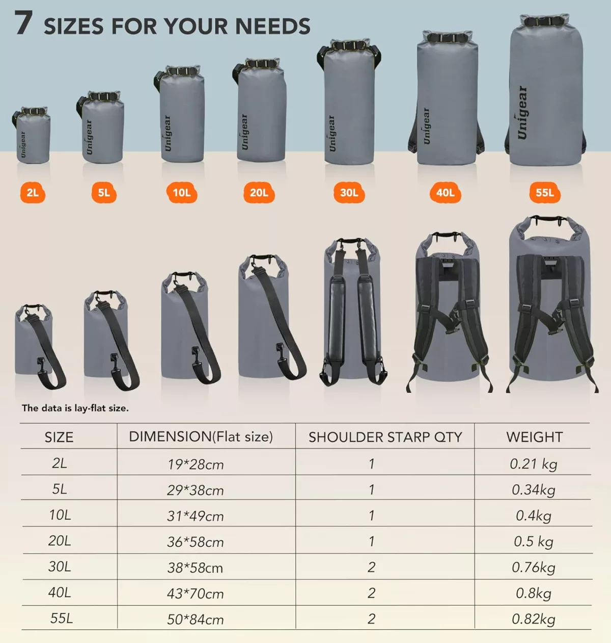 Unigear Vodotesný Suchý Vak – 2L-40L | Kajak, Pláž, Kempovanie ???? Prehľad produktu