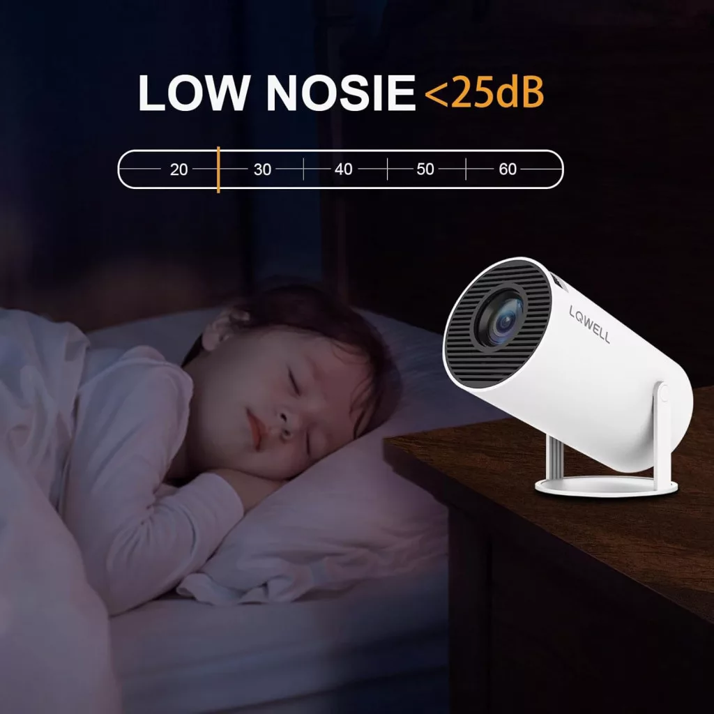 Automatická korekcia keystone a otočný stojan umožňujú flexibilné uhly premietania, takže si ľahko nastavíte požadovanú veľkosť a pozíciu obrazu. Tichá prevádzka (pod 25 dB) je ideálna pre domáce použitie, zatiaľ čo podpora dekódovania 4K zaisťuje, že si vychutnáte aj najnovšie formáty videí.