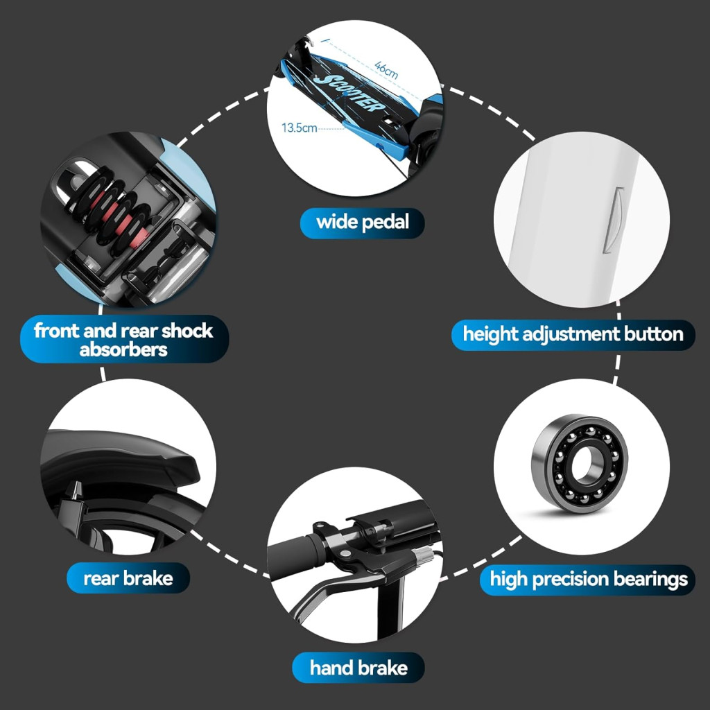 A MEE GOO felnőtt roller kiváló választás azoknak, akik minőségi, megbízható és stílusos járművet keresnek. Az összecsukható szerkezet és könnyű súly ideális a modern, mobil életstílushoz. A professzionális tárcsafék és kettős lengéscsillapító biztosítja a biztonságot és kényelmet, míg a magas minőségű alkatrészek (ABEC-7 csapágyak, 200mm PU kerekek) garantálják a hosszú élettartamot és sima utazást. Az ergonomikus kialakítás és modern szín opciók pedig biztosítják, hogy nemcsak funkcionális, hanem stílusos is lesz a közlekedésed.