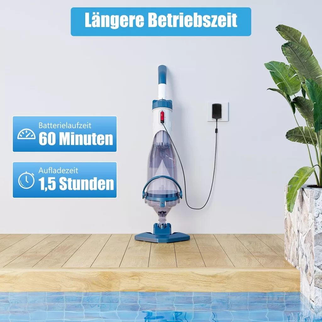 Akumulátorový bazénový vysávač Enhulk je moderné, bezdrôtové riešenie, ktoré vás úplne oslobodí od otravných káblov. Tento inovatívny nástroj je špeciálne navrhnutý na čistenie nadzemných bazénov, víriviek a iných vodných nádrží. 2000 mAh lítiová batéria zabezpečuje až 60 minút nepretržitej prevádzky, čo postačuje na kompletné vyčistenie väčšiny bazénov. Kombinácia nízkej hlučnosti a efektívneho sacieho výkonu robí z tohto zariadenia ideálnu voľbu pre rodiny.
