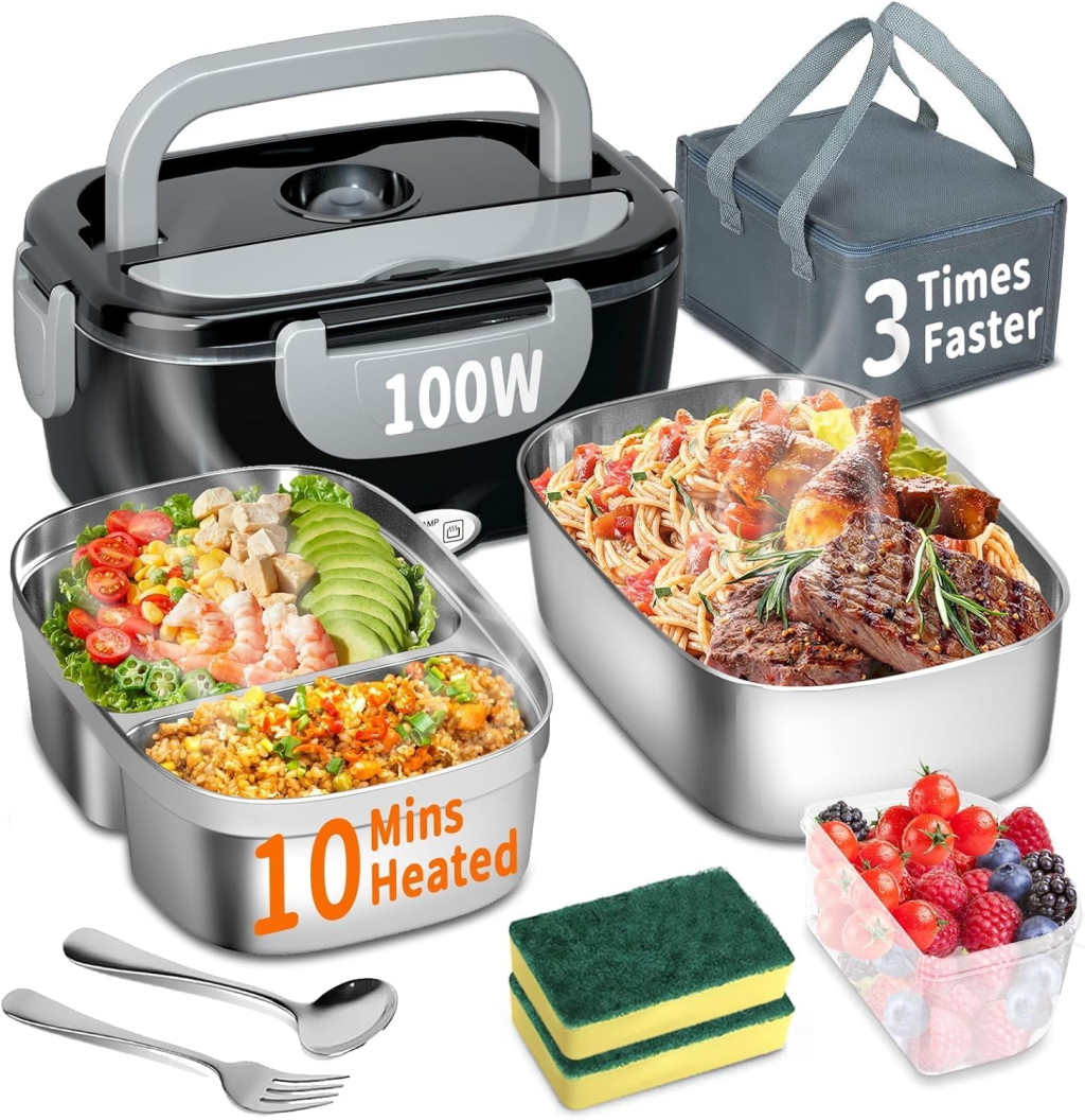 A SOOOEC elektromos ebéddoboz egy forradalmi megoldás azok számára, akik meleg, friss ételt szeretnének fogyasztani munka közben. Ez a 100 wattos, 3 az 1-ben hordozható fűtött ebéddoboz mindössze 10 perc alatt képes az ételt felmelegíteni, függetlenül attól, hogy autóban, teherautóban vagy irodában használja. A rozsdamentes acél съдържák és a szigetelt táska biztosítja, hogy az étel hosszú ideig meleg maradjon.