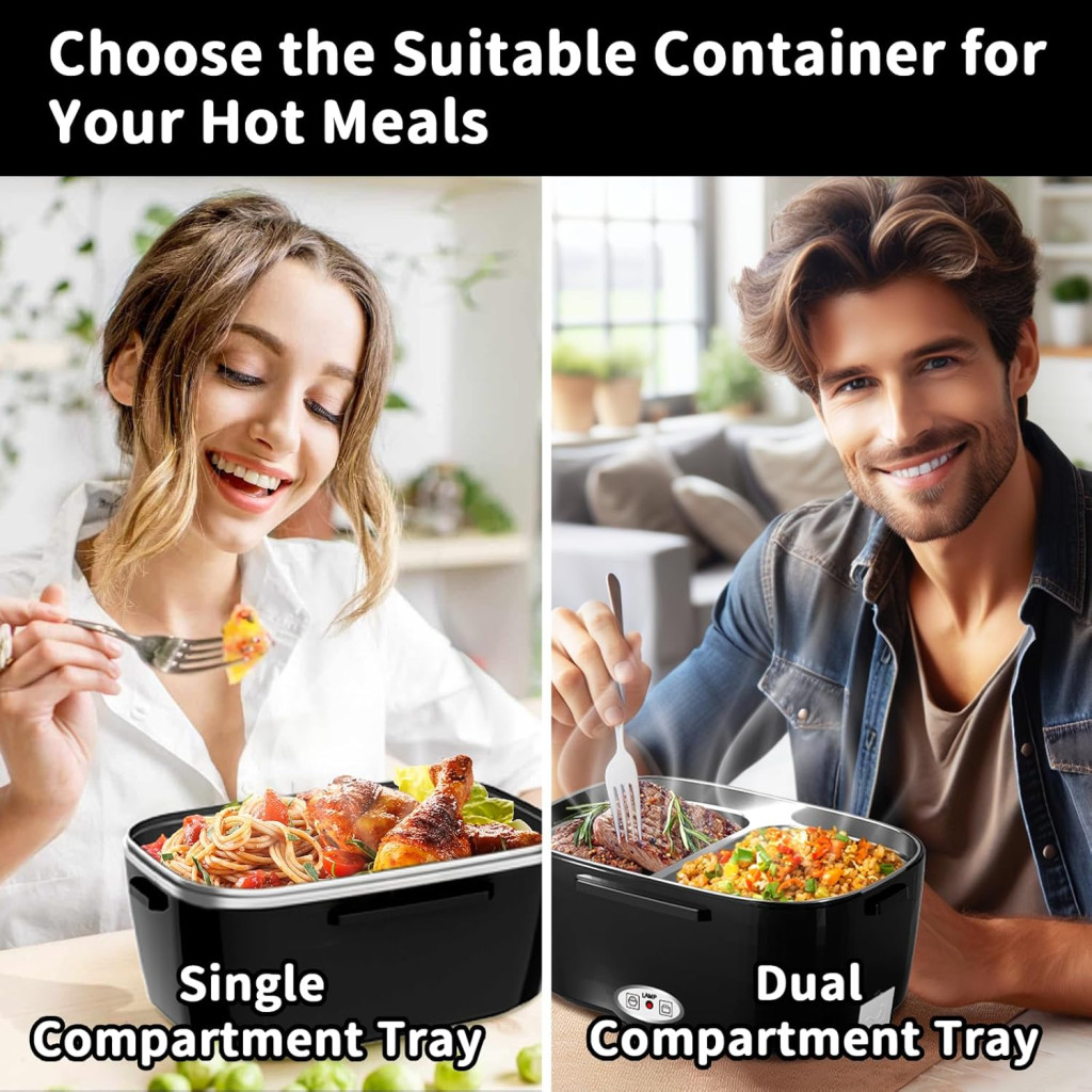 A SOOOEC elektromos ebéddoboz a tökéletes megoldás azok számára, akik nem szeretnének hideg ételt fogyasztani munka közben. A 100 wattos teljesítmény és a gyors fűtési képesség biztosítja, hogy az étel mindig meleg és friss legyen. A három különböző feszültséggel való kompatibilitás azt jelenti, hogy bárhol is tartózkodik - autóban, teherautóban vagy irodában - mindig van lehetősége meleg ételt fogyasztani.