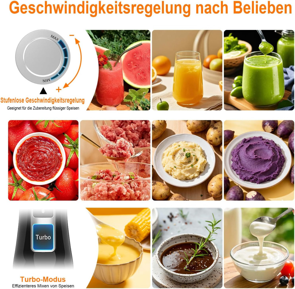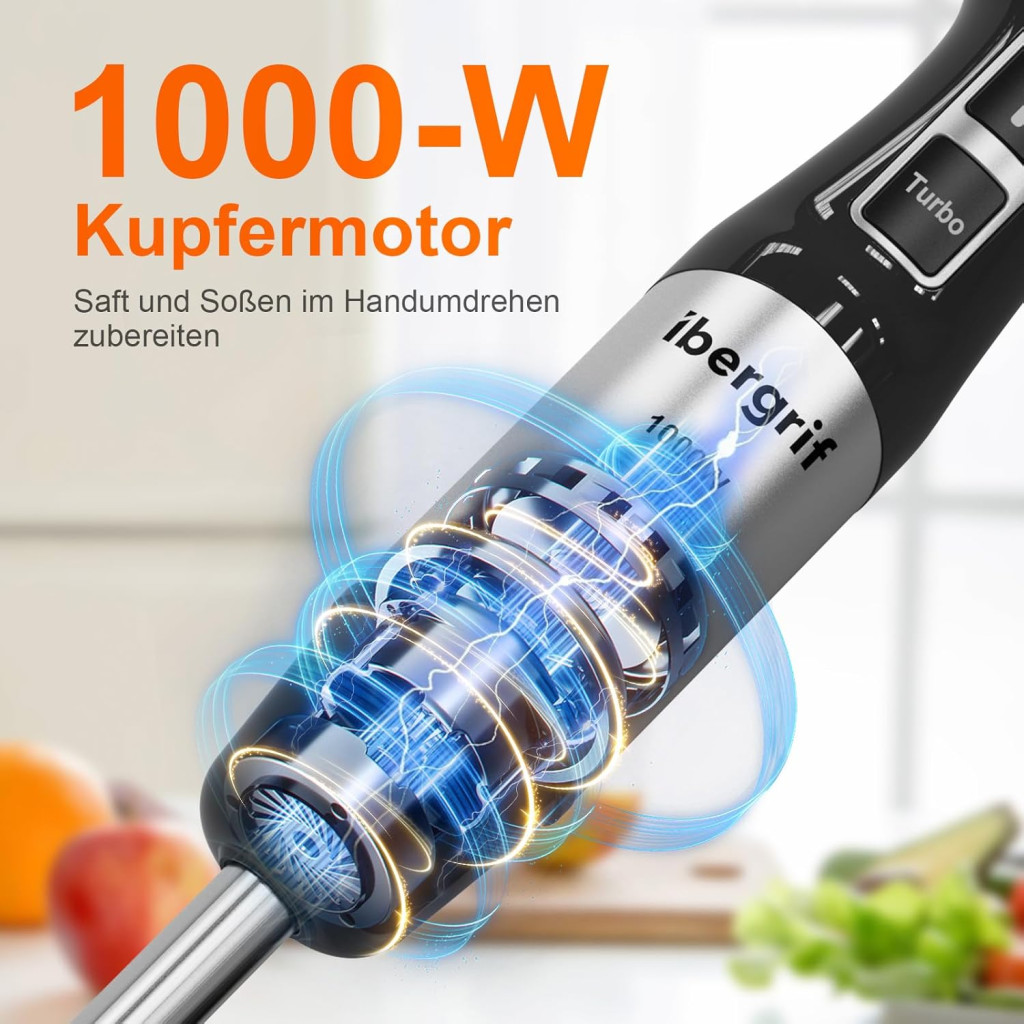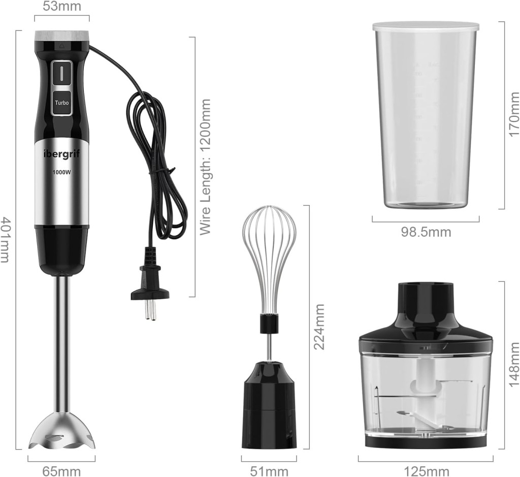 Ibergrif 1000W 4az1-ben Rozsdamentes Kézi Mixer Turbó Funkcióval és Sebességszabályzóval