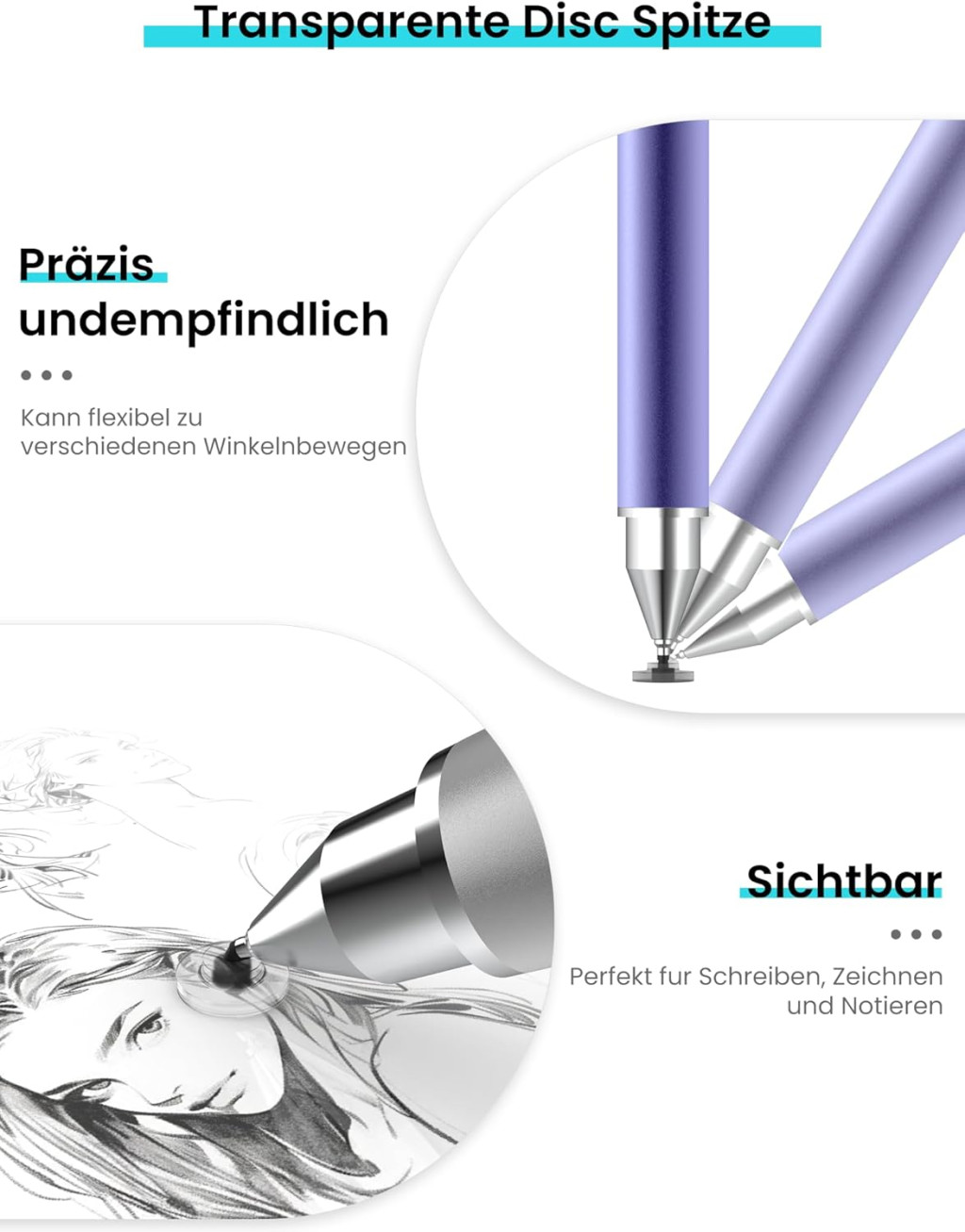 Precíz Korong Tipp: Az átlátszó 6 mm-es korong tipp lehetővé teszi, hogy pontosan lásd, hol írsz vagy rajzolsz
