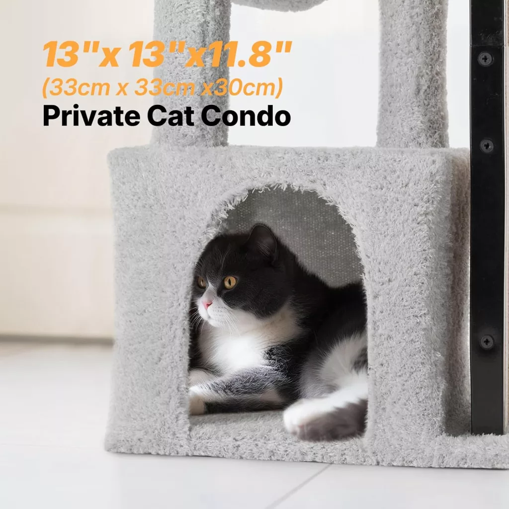 Škrabadlo pre mačky Veehoo je kompaktné, 90 cm vysoké riešenie, ktoré je ideálne do menších bytov a pre mačiatka. Tento viacúrovňový mačací strom nie je len kus nábytku, ale kompletné ihrisko a miesto na odpočinok pre vášho domáceho miláčika. Pevný kovový rám a stabilná základňa zaručujú, že vaša mačka môže bezpečne liezť, škriabať a hrať sa bez toho, aby sa konštrukcia prevrátila alebo poškodila.