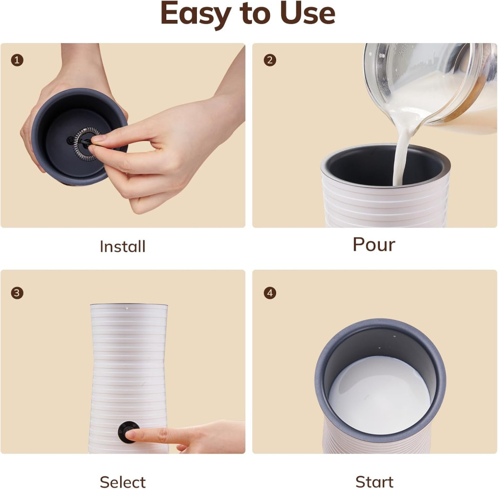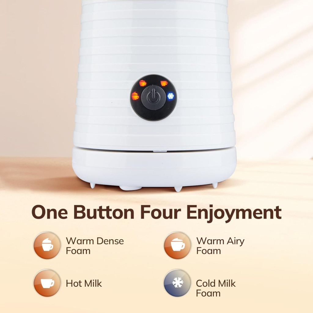 A Morpilot elektromos tejhabosító egy sokoldalú konyhai eszköz, amely teljesen megváltoztatja a kávéélményt otthonában. Ez a modern készülék négy különböző funkcióval rendelkezik: meleg sűrű tejhab, meleg légies tejhab, hideg tejhab és forró tej előállítására képes. Mindössze 2 perc alatt elkészítheti a tökéletes tejhabot, amely elegendő 2 normál méretű kávéhoz. Az intelligens hőmérséklet-szabályozás biztosítja, hogy a tej vagy tejhab pontosan a megfelelő hőmérsékletre melegedjen fel, majd automatikusan kikapcsol.