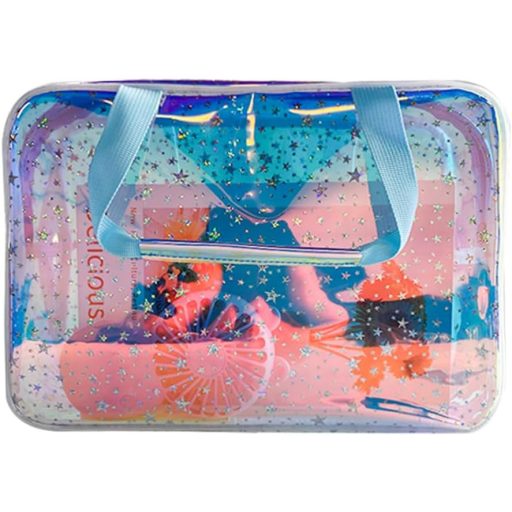 Vodeodolná kozmetická taštička z TPU s hviezdicovým vzorom - holografická modrá