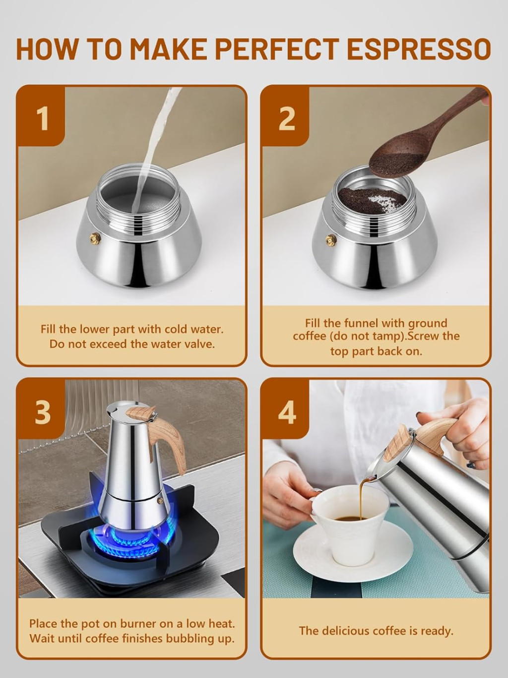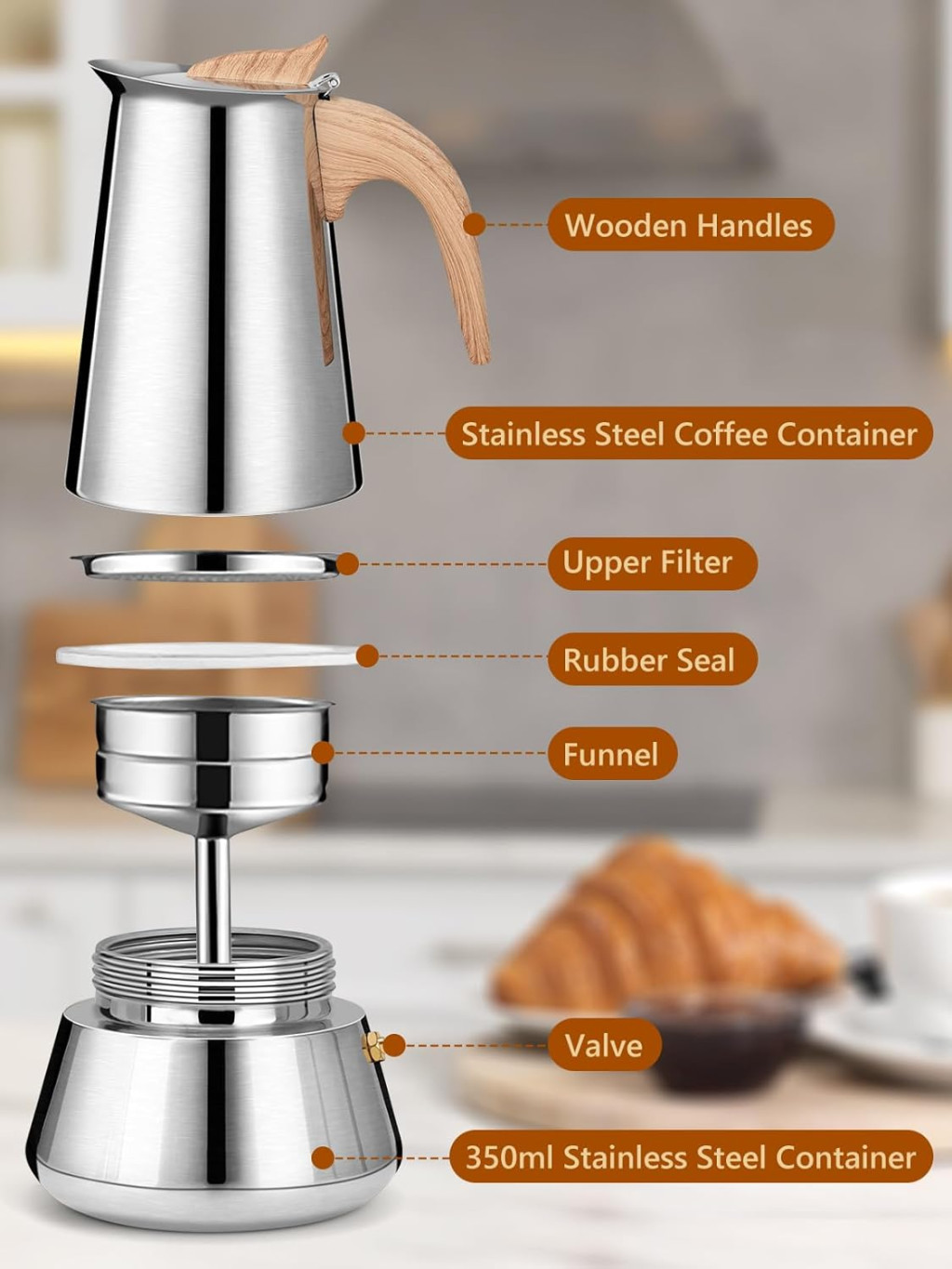 VINATO Rozsdamentes Acél Espresso Készülék 350 ml (6 Csésze) - Indukciós Moka Pot