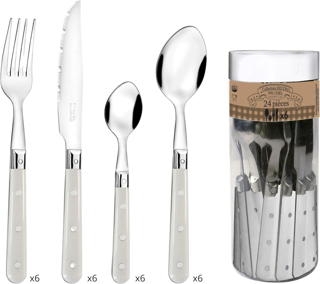 A PRADEL ESSENTIEL Bistro Club 24 darabos evőeszköz készlet a francia elegancia és a mindennapi praktikum tökéletes kombinációja. Ez a sokoldalú készlet hat személyre tervezett, és minden étkezéshez szükséges evőeszközt tartalmaz. A klasszikus design és a kiváló minőség garantálja, hogy évekig megbízható társa lesz az asztalon.