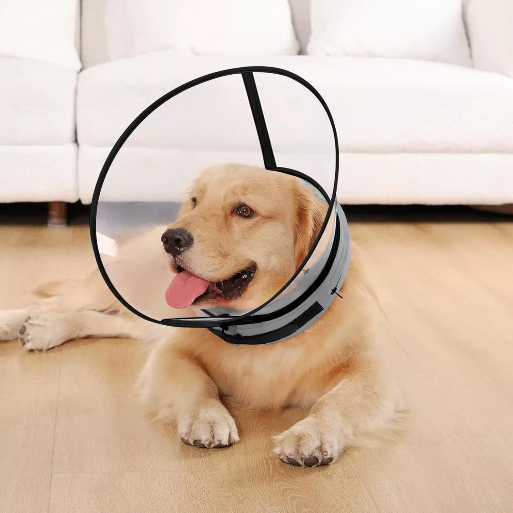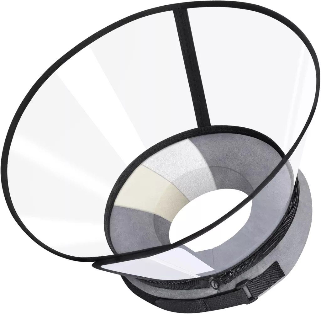 - Priehľadný plastový štít: Odnímateľný, čistý plastový štít umožňuje psovi dobre vidieť na okolie, čím sa znižuje jeho úzkosť a stres.