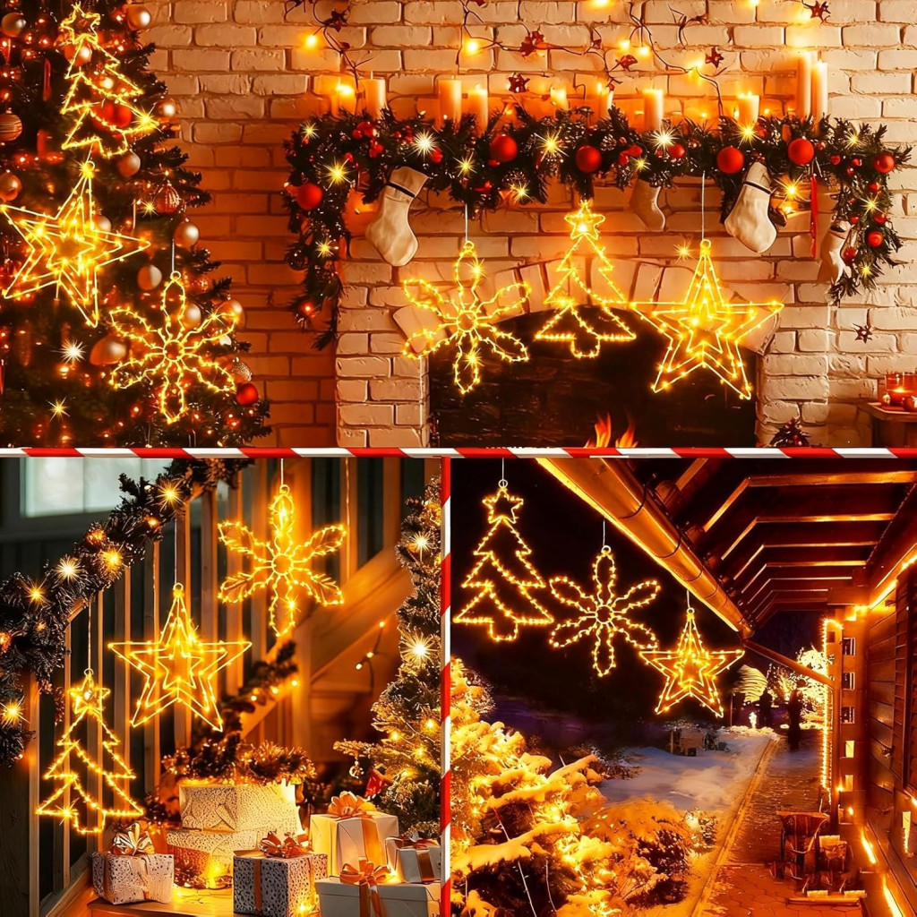 yowin Karácsonyi LED Ablakdísz Szett 3db Csillag/Fa/Hópehely Dekoráció Időzítővel
