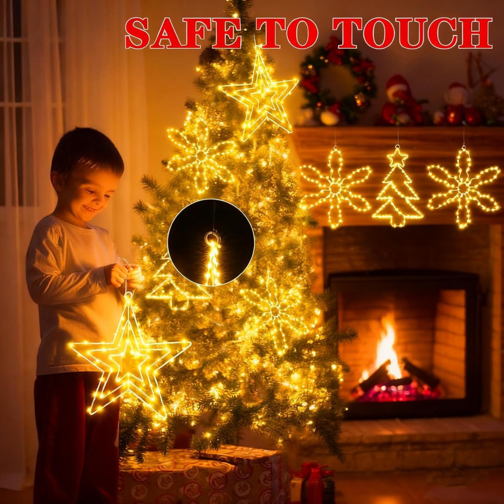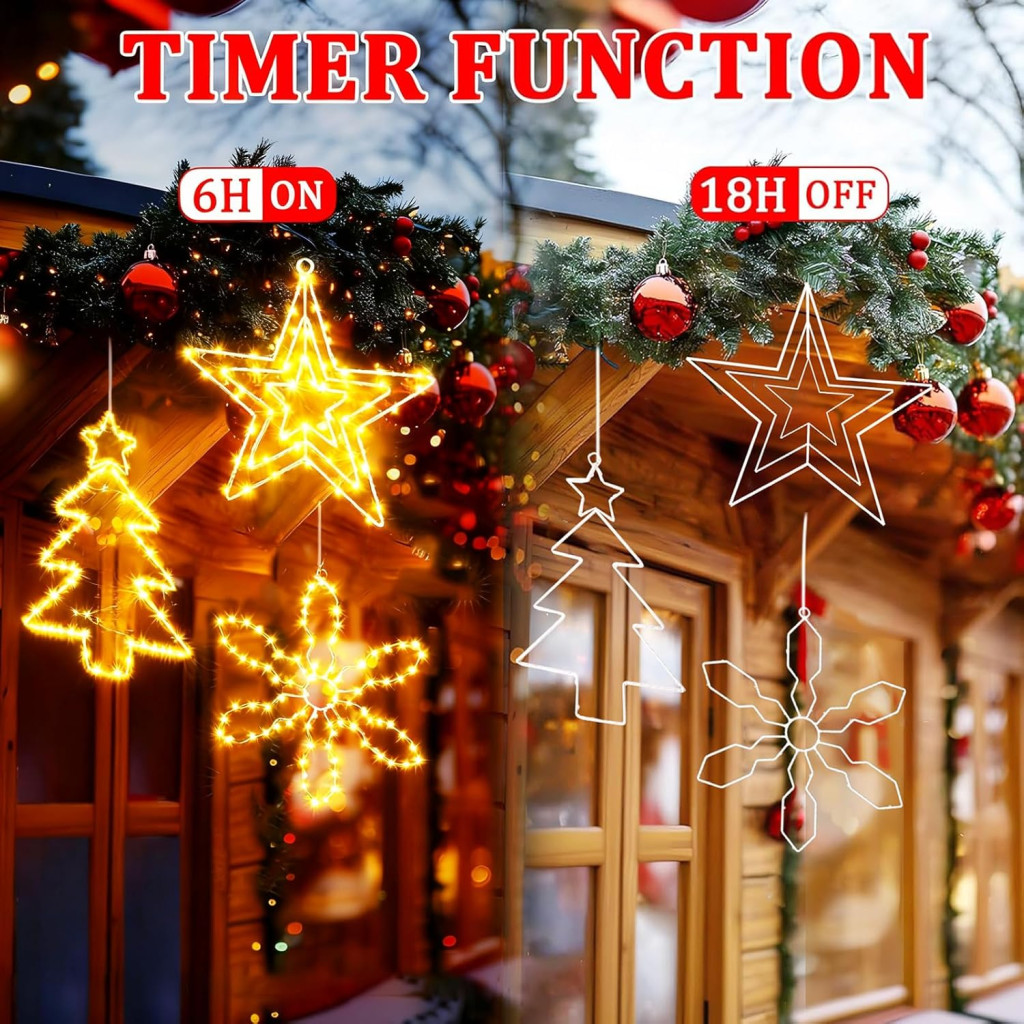 A Yowin karácsonyi ablakdísz egy elegáns és praktikus megoldás az otthona ünnepi dekorálásához. Ez a 3 darabos szett három különböző motívumot tartalmaz: egy csillagot, egy karácsonyfát és egy hópehelyet, amelyek mindegyike LED-es megvilágítással rendelkezik. Az akkumulátoros működés és a vízálló kialakítás lehetővé teszi, hogy beltérben és kültérben egyaránt használja, függetlenül az időjárási viszonyoktól. Az intelligens időzítő funkció automatikusan bekapcsolja és kikapcsolja a fényeket, így energiatakarékos és kényelmes megoldást nyújt.