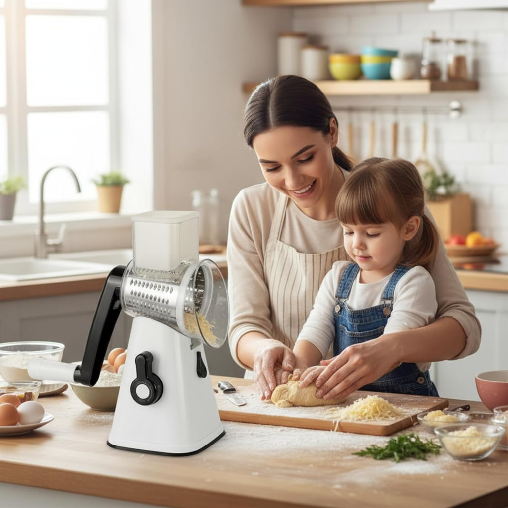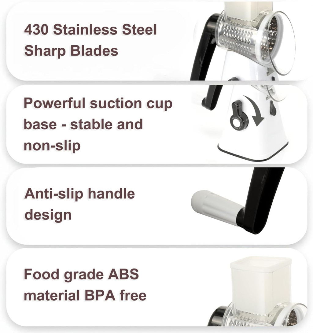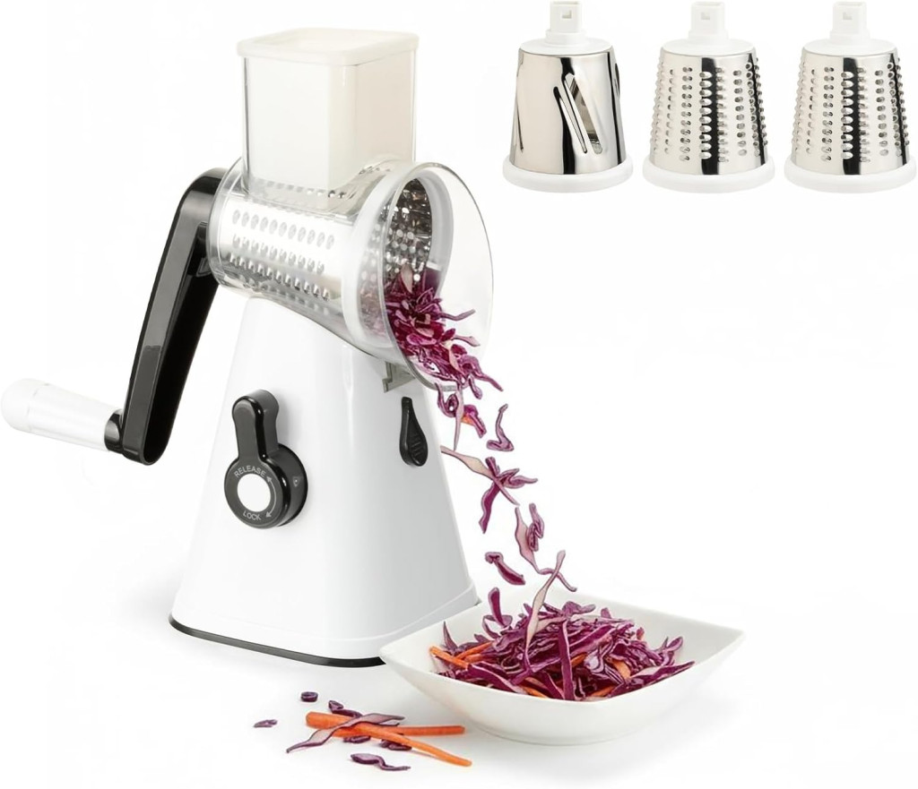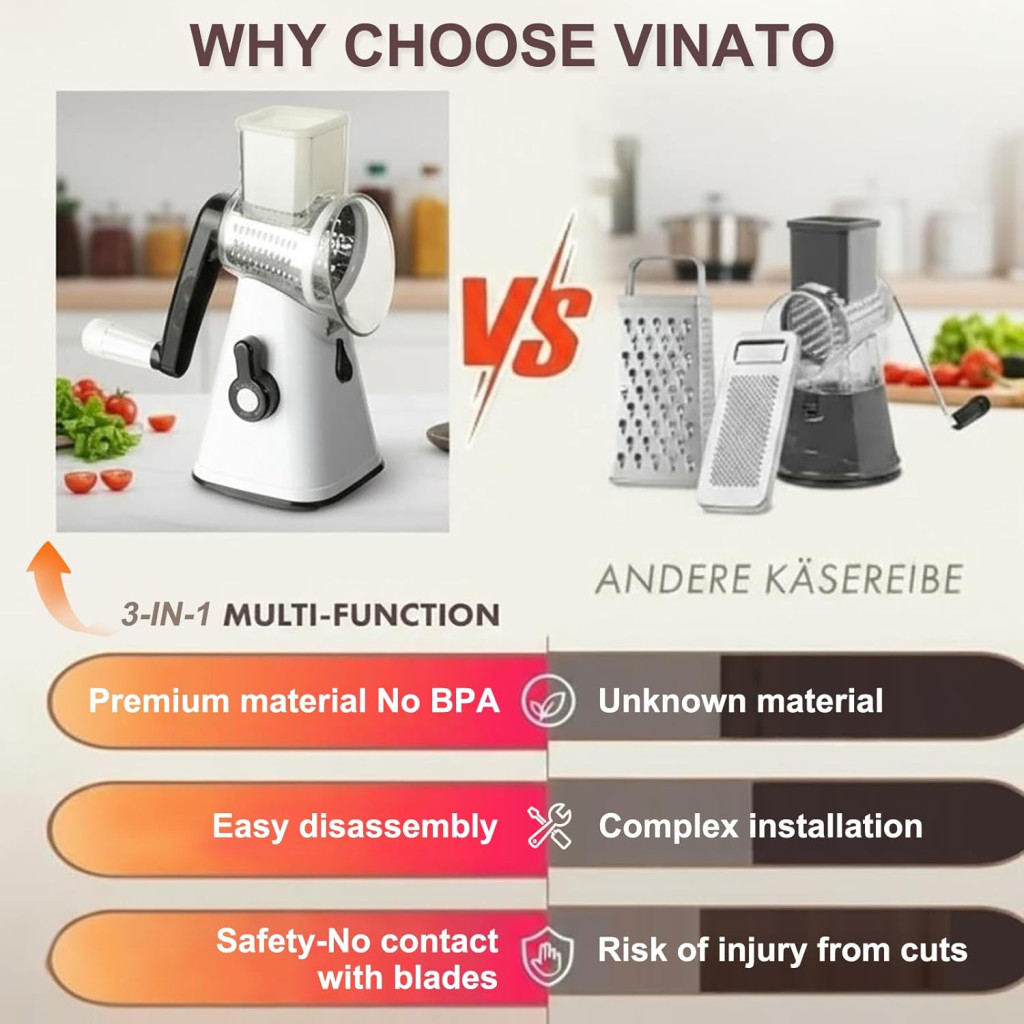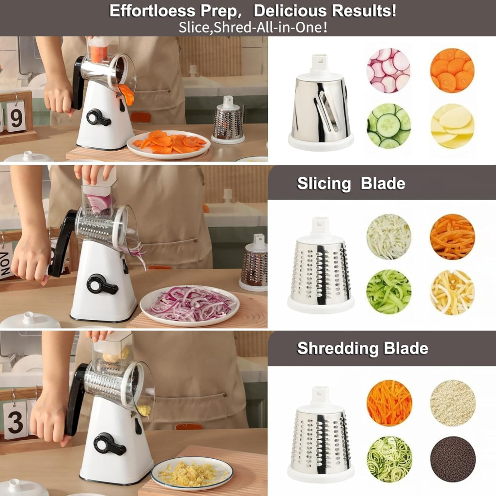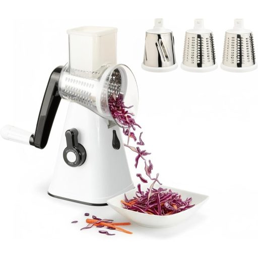 VINATO Forgókaros Zöldségvágó 3 Pengével, Rozsdamentes Acél, Sajtreszelő és Szeletelő Funkció