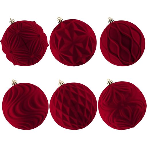 Lanpn 6-dielna sada veľkých vianočných gúľ, červená zamatová dekorácia, 10 cm, nerozbitný plast