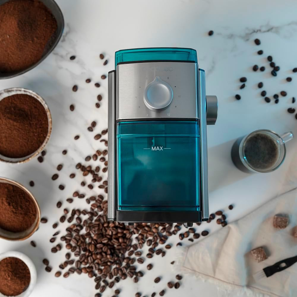 - 150 W teljesítmény: Erőteljes motor, amely másodpercek alatt őrli meg a kávébabokat