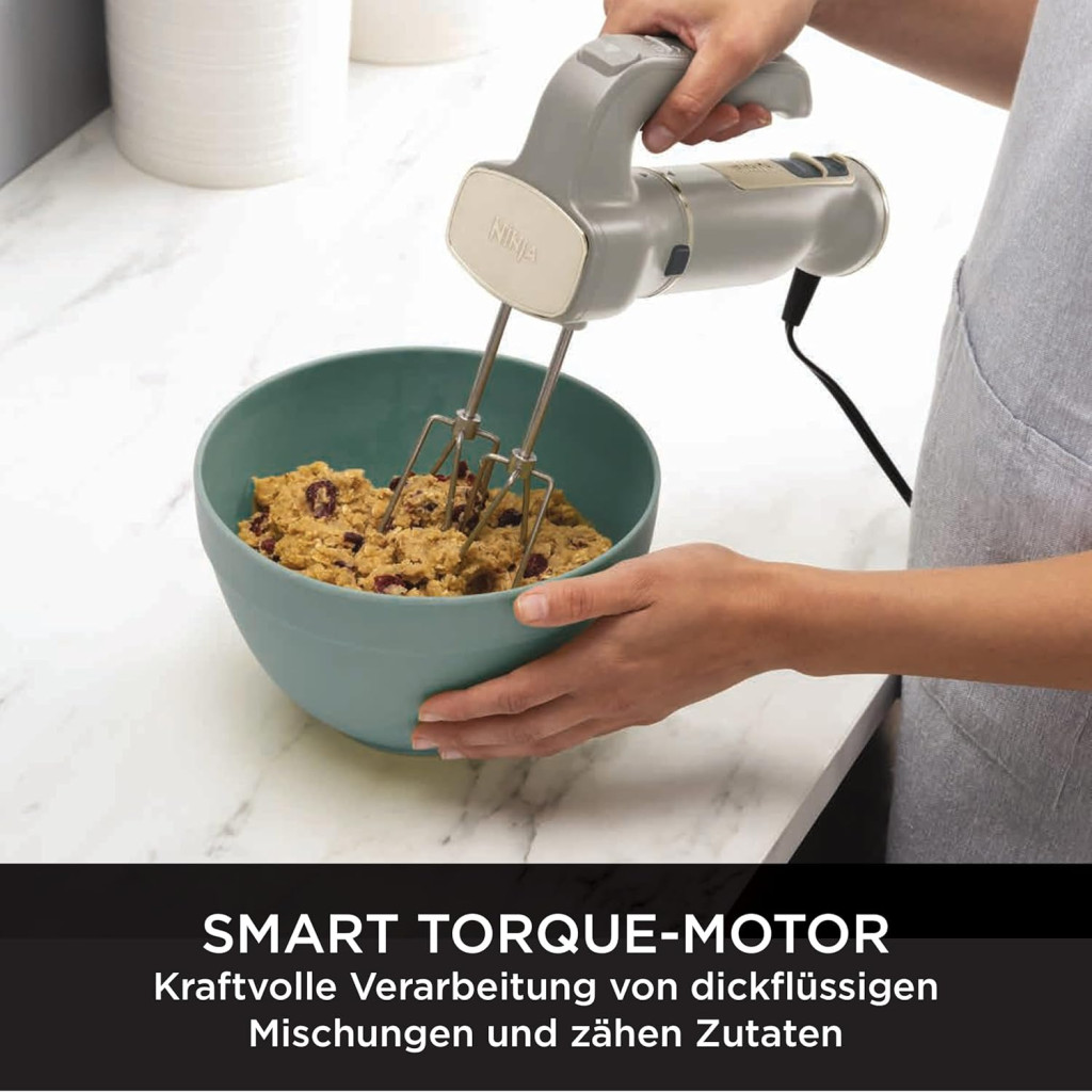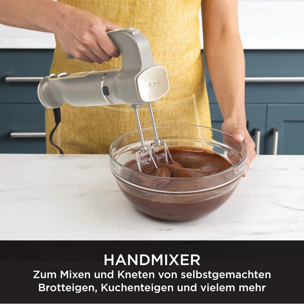 A Ninja Foodi CI100EUSTGD egy forradalmi 3-in-1 konyhai eszköz, amely egyesíti a kézi turmixgépet, a kézi mixert és az apritót egyetlen kompakt készülékben. Az exkluzív kő-arany szín elegáns megjelenést kölcsönöz konyhájának, miközben a 850 wattos SmartTorque motor biztosítja a professzionális teljesítményt. Ez az intelligens készülék automatikusan felismeri az aktuálisan csatlakoztatott kiegészítőt, és ennek megfelelően állítja be a rendelkezésre álló sebességfokozatokat.