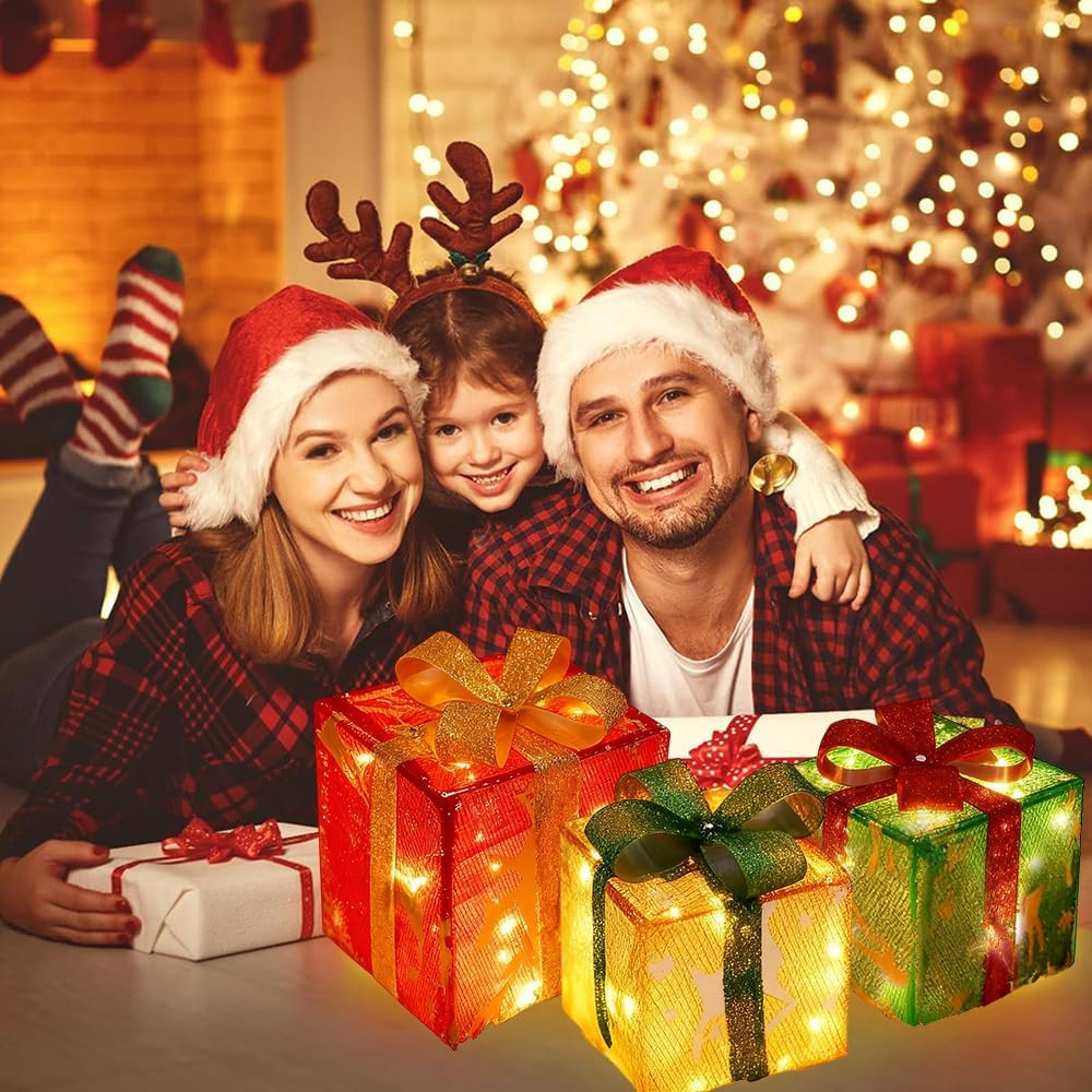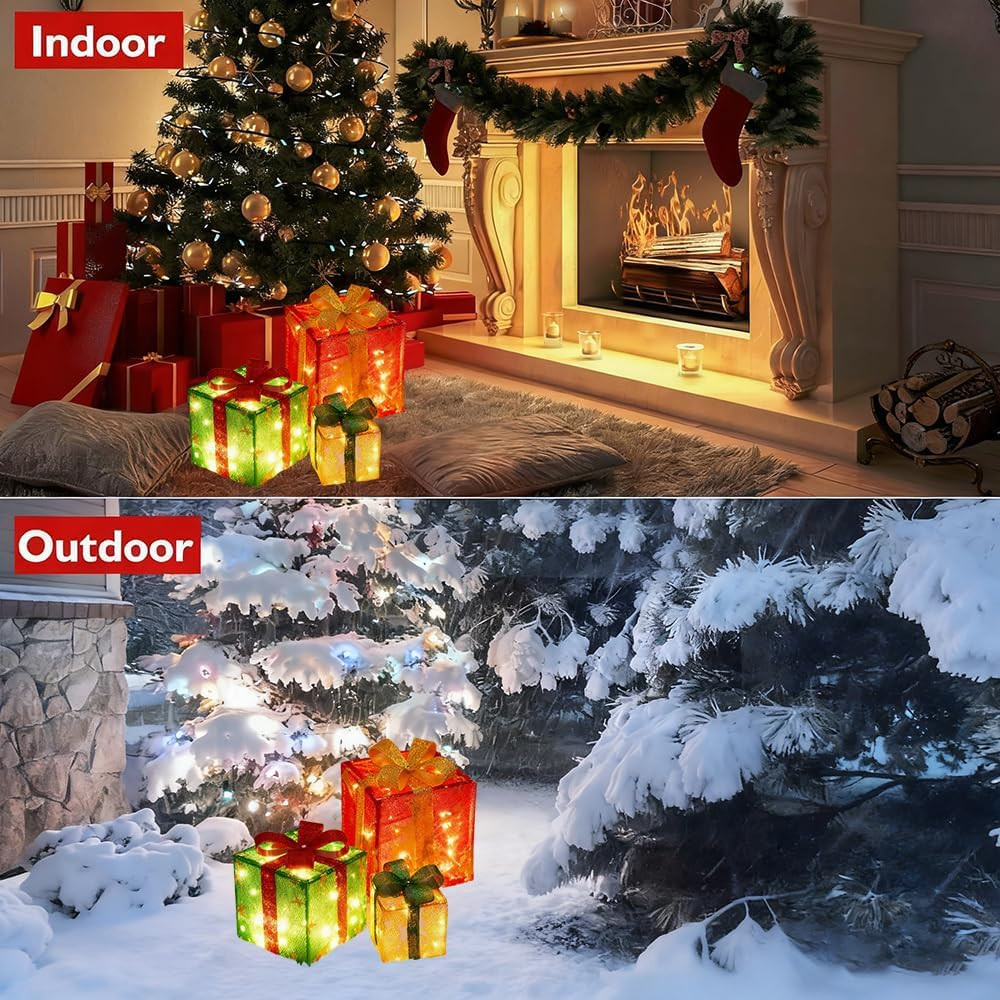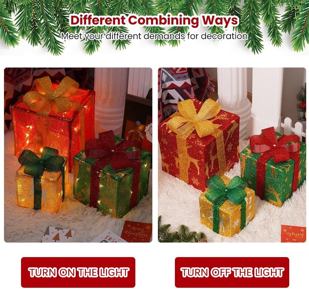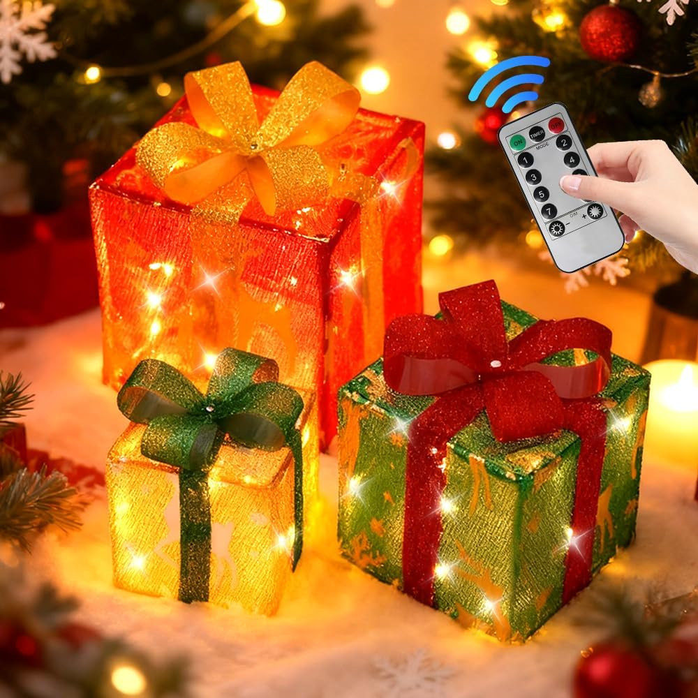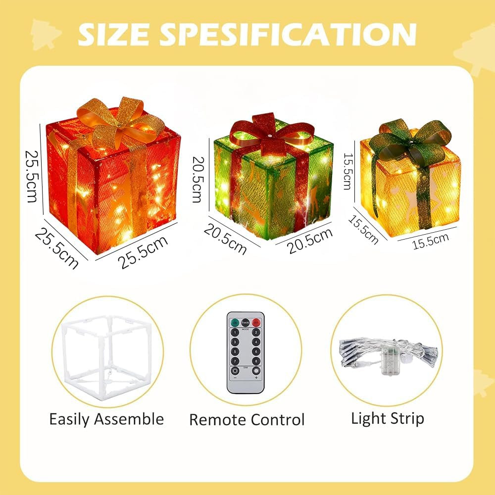 3-dielna súprava LED darčekových škatúľ na vianočnú výzdobu – s diaľkovým ovládaním ???? Prehľad produktu